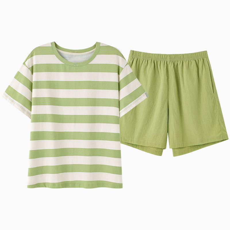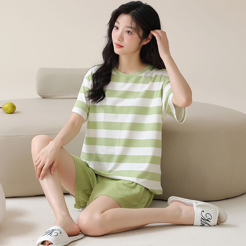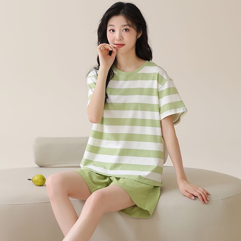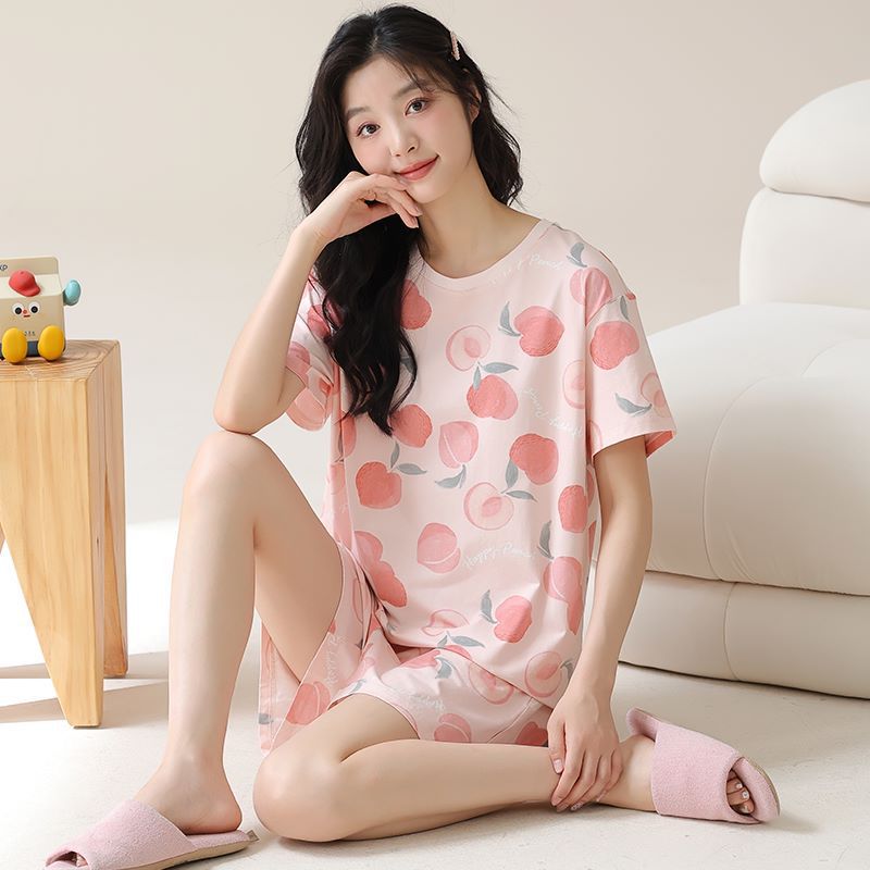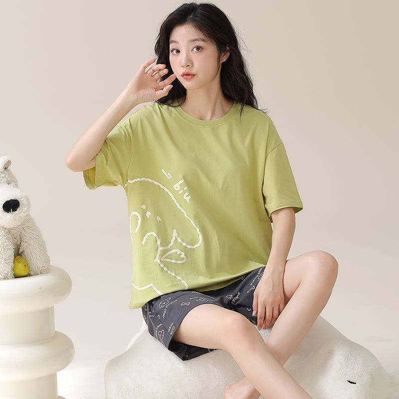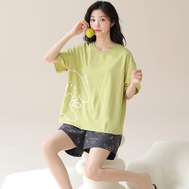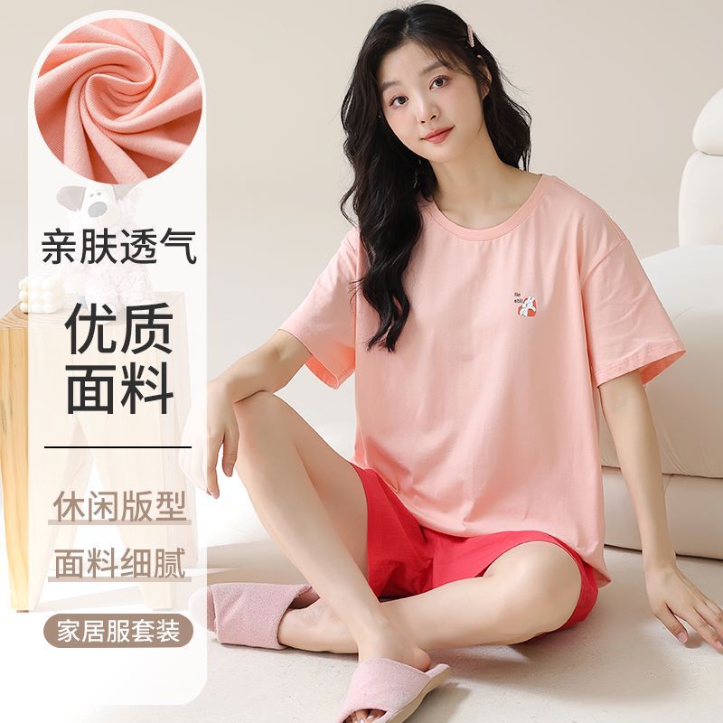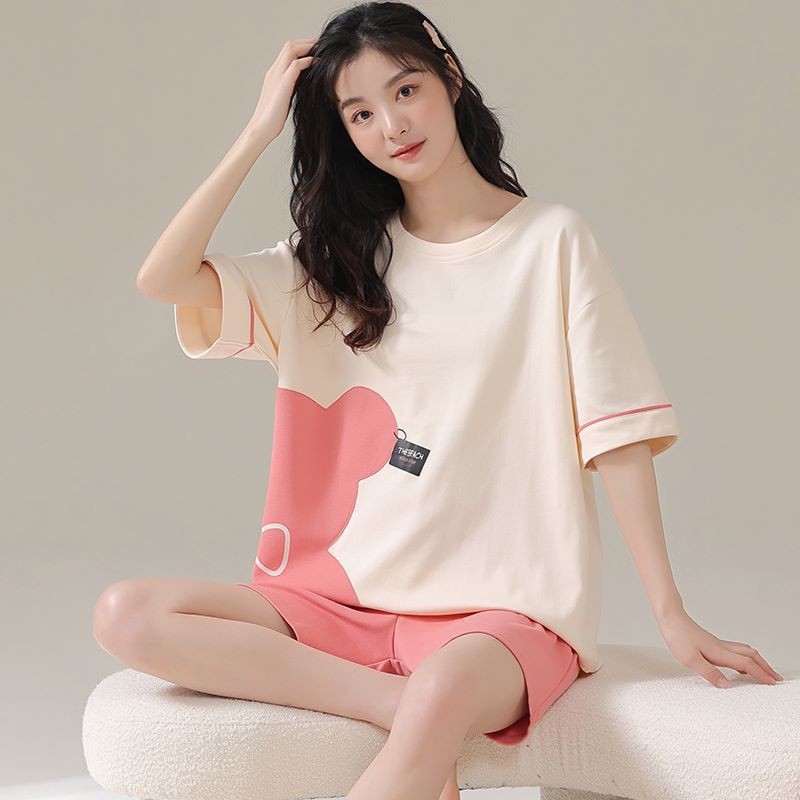 • パジャマ女性の夏のスーツ純粋な綿の高品質半袖ショーツ 2024 新しい漫画薄いホーム服スーツ