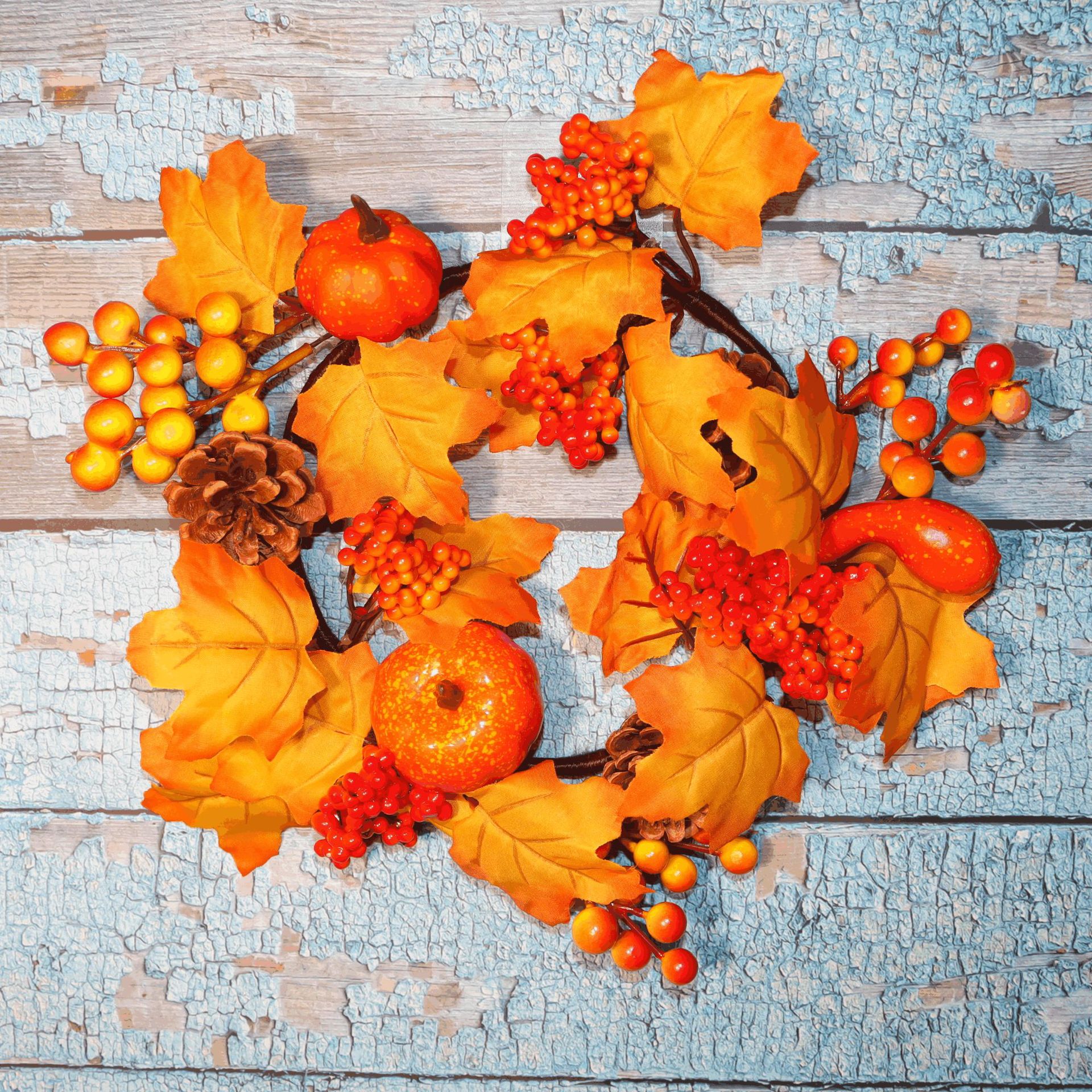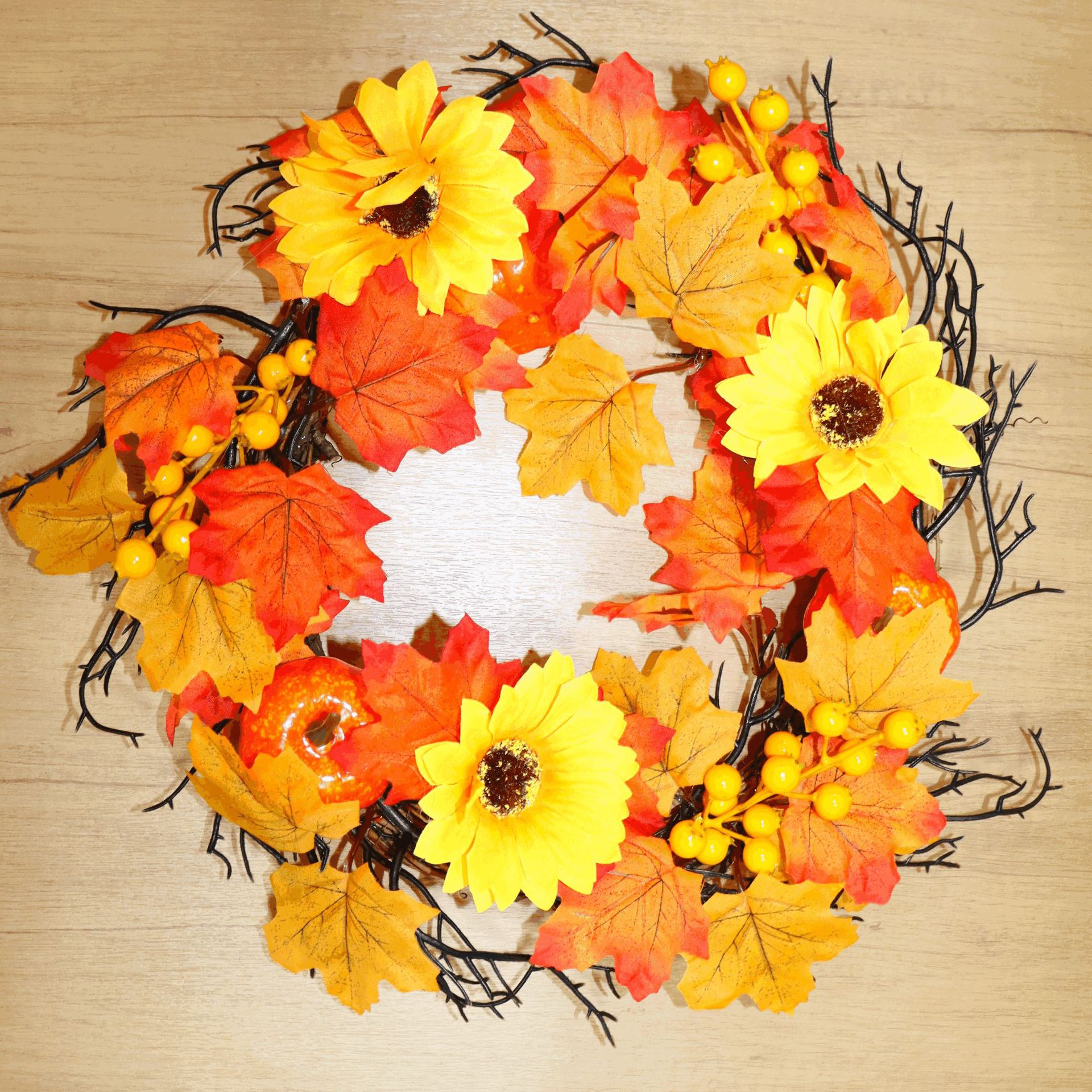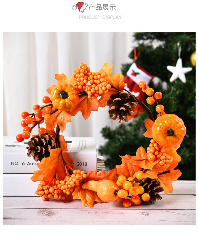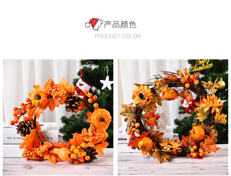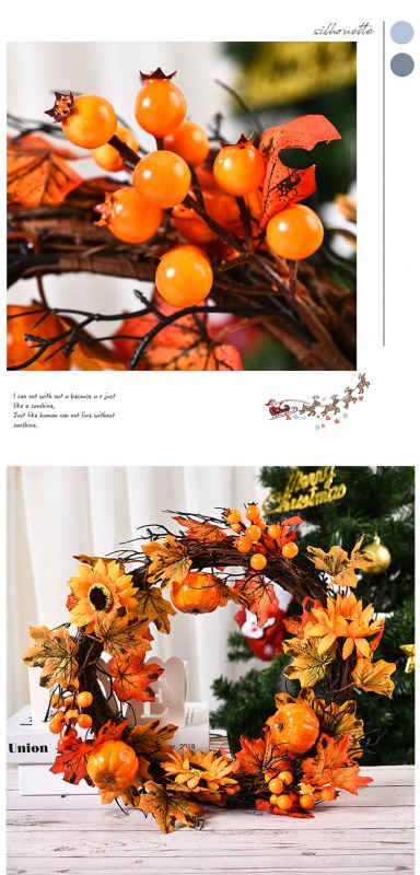 • ハロウィン秋のカエデの葉の花輪カボチャベリードアぶら下げ収穫祭つるの花輪感謝祭の花輪の装飾卸売