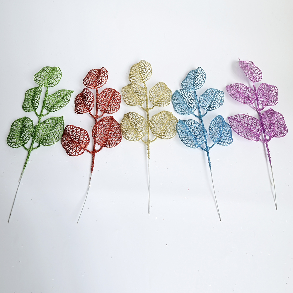 • クリスマス装飾 38 センチメートル金粉中空クリスマス葉クリスマスツリーフラワーアレンジメント装飾 diy 枝葉