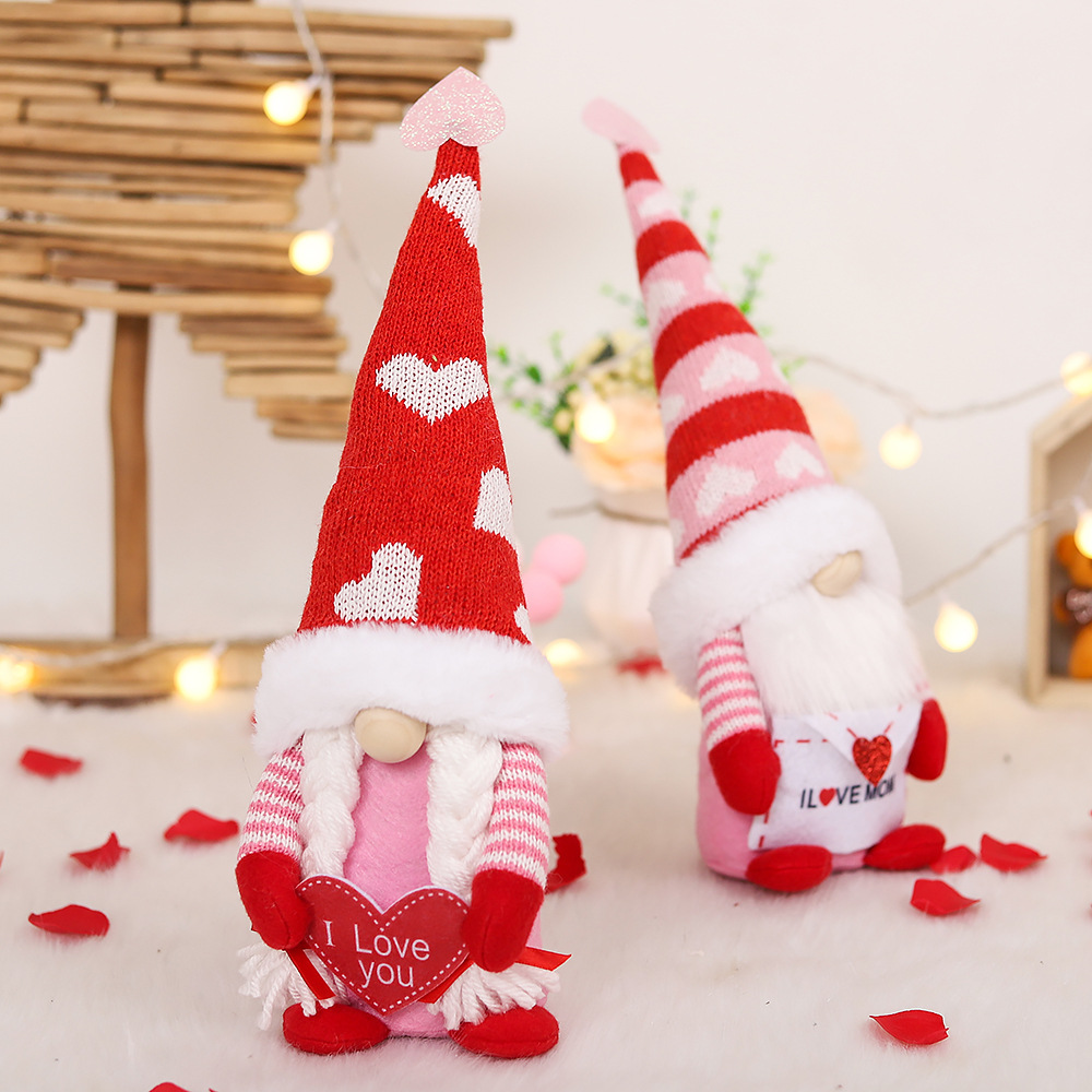 • バレンタインデー用品 ニット帽 フェイスレス人形 カップル人形 ドワーフ人形 人形 母の日 窓飾り