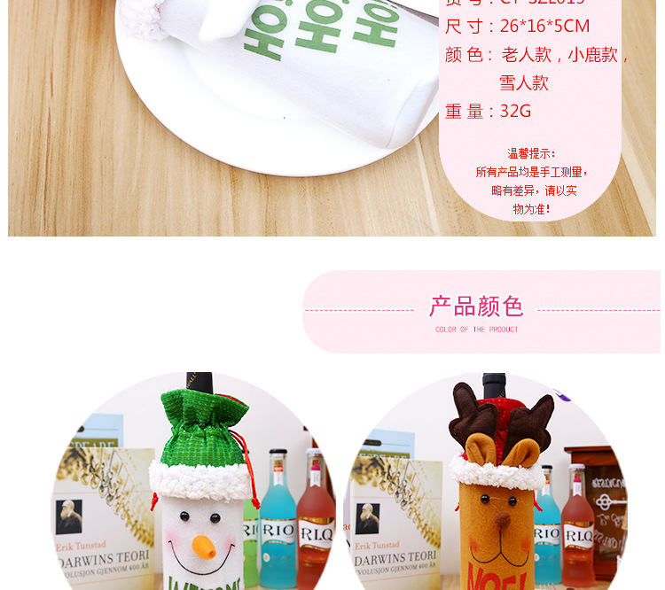 • 新しいクリスマス帽子装飾老人ワインボトルバッグ赤ワイン包装袋雪だるまテーブルバー用品卸売