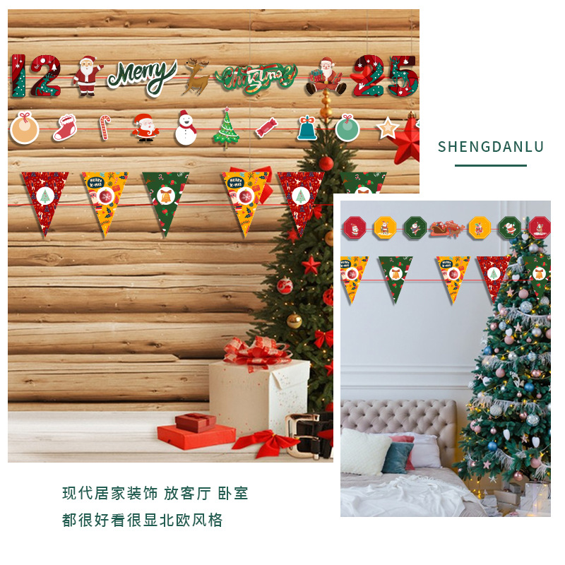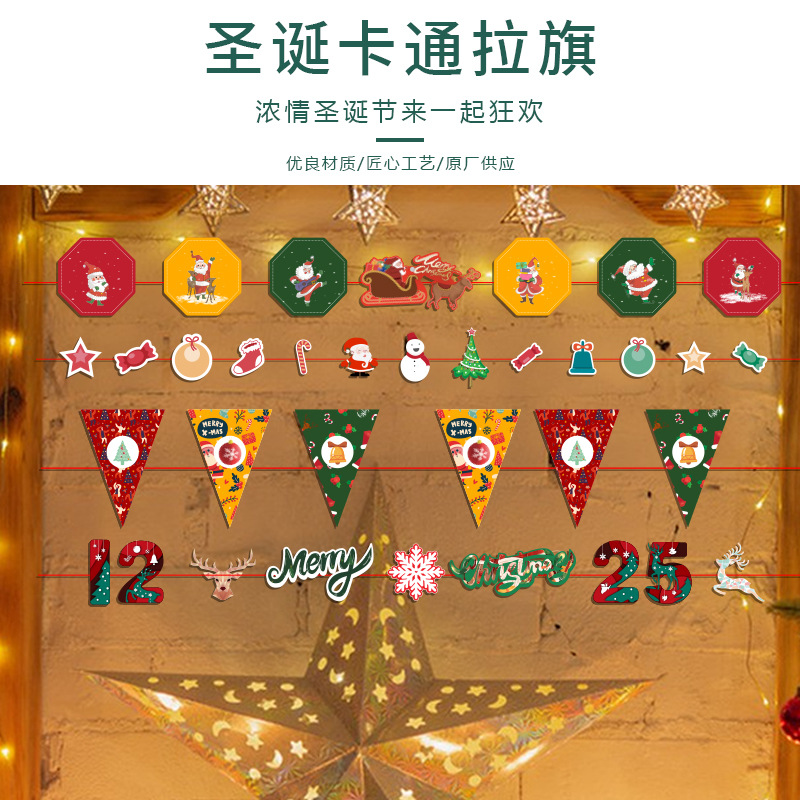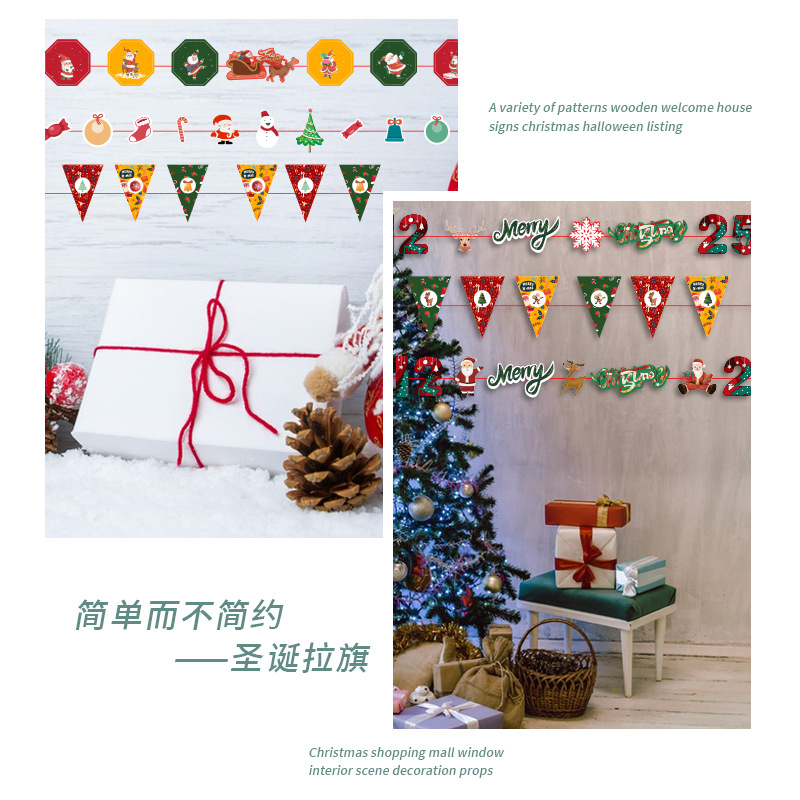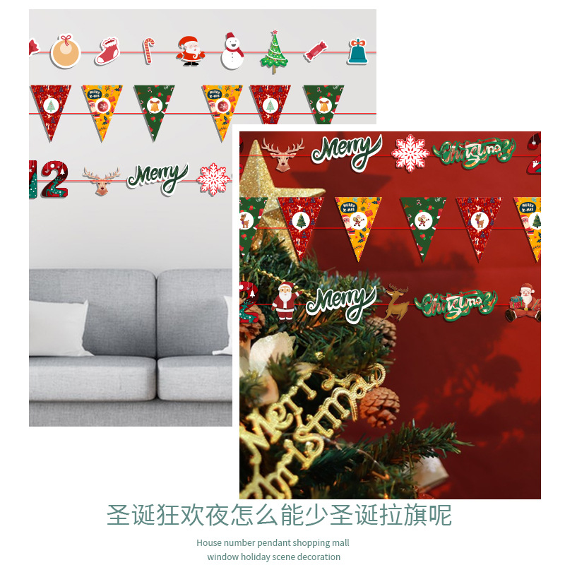 • クリスマス漫画の旗引き手ヘラジカ老人装飾ぶら下げ旗結婚式三角形ぶら下げ旗プル花誕生日パーティーペンダント