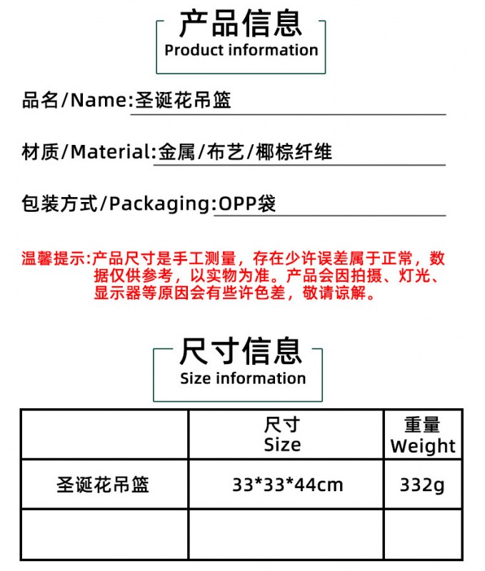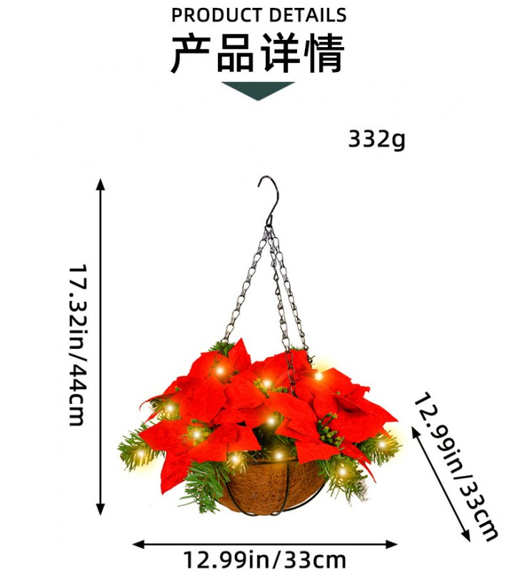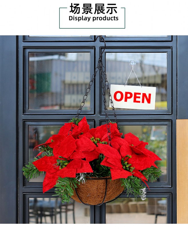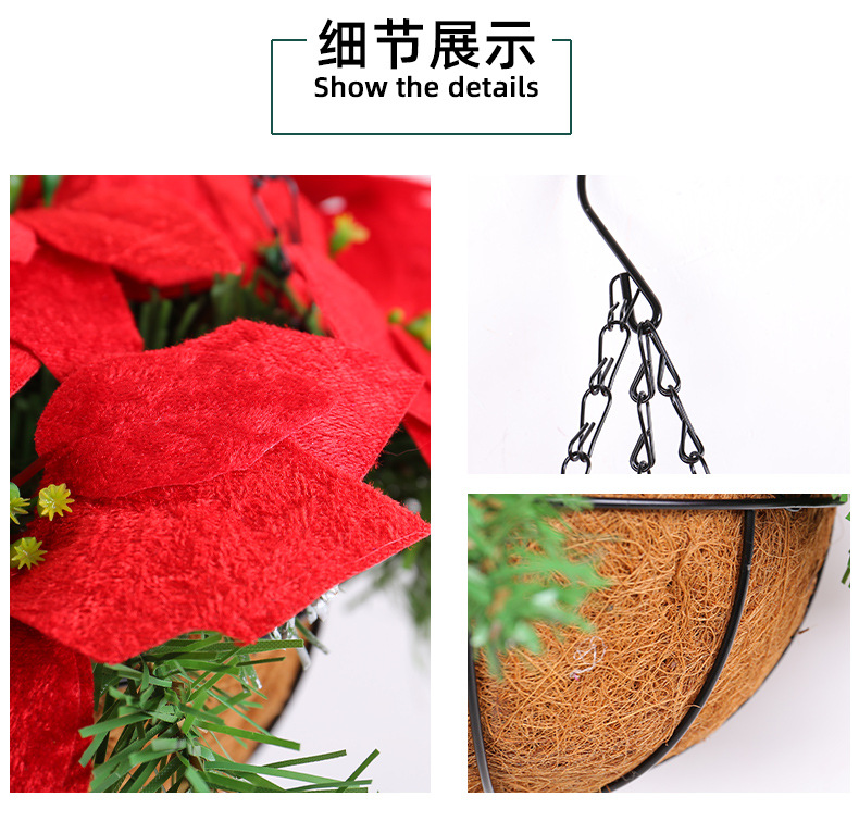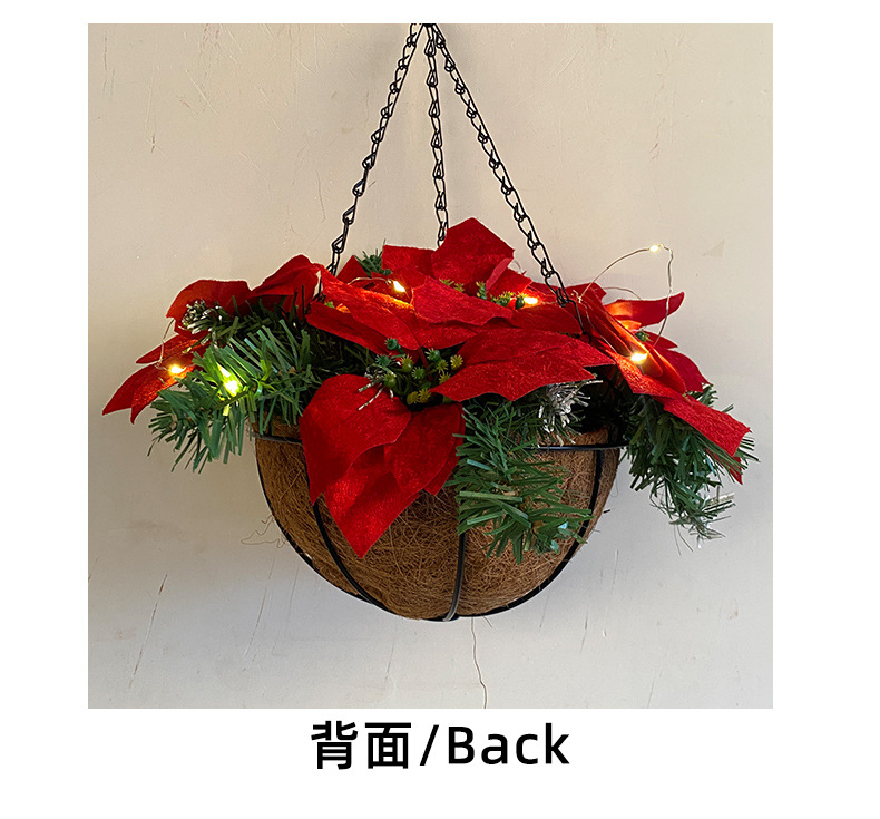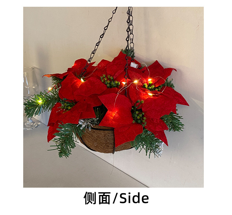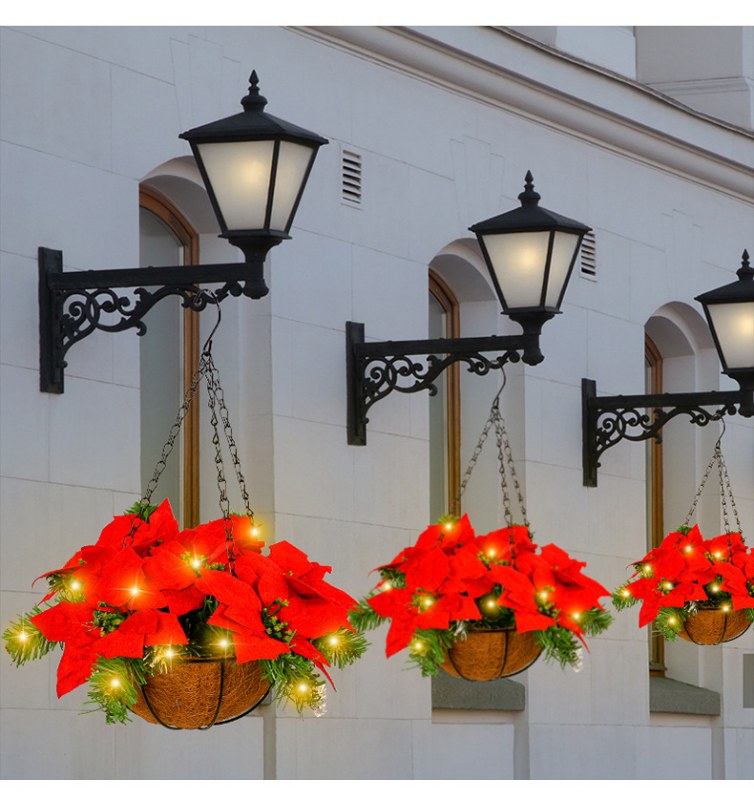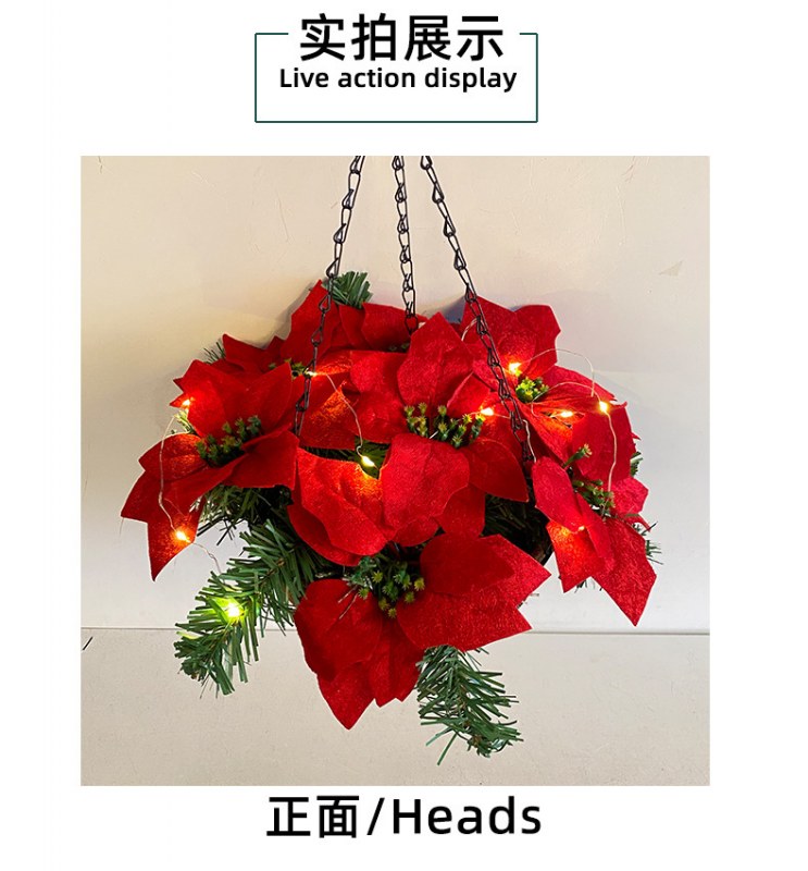 • 赤いクリスマスフラワーハンギングバスケットショッピングモールシミュレーションフラワー壁掛けドアハンギングクリスマス街路灯の装飾