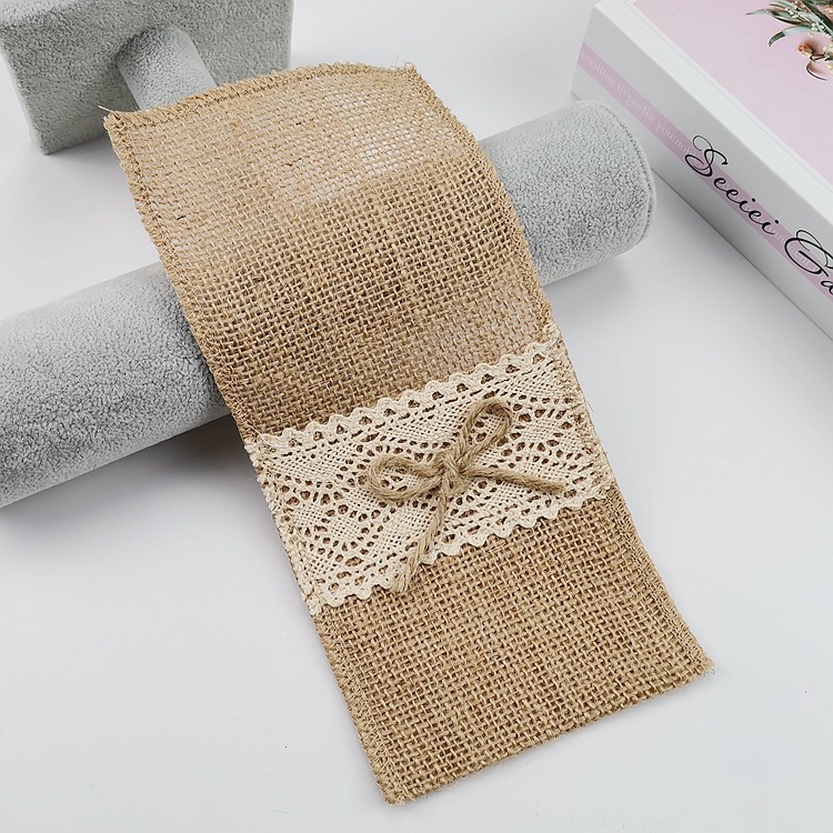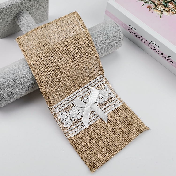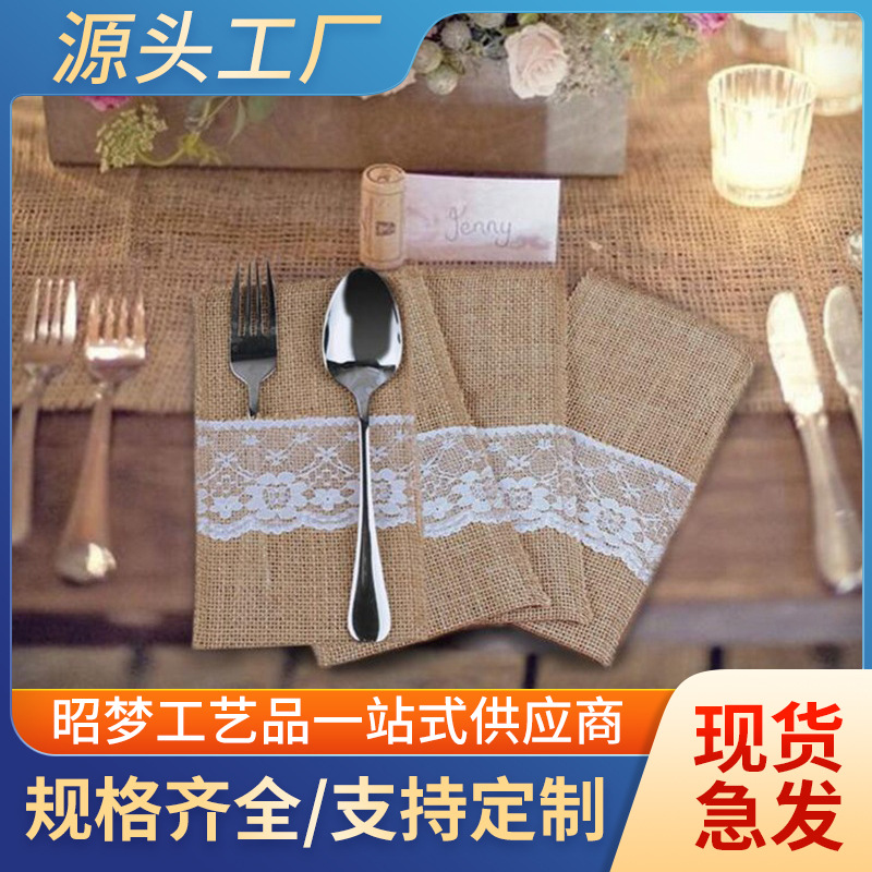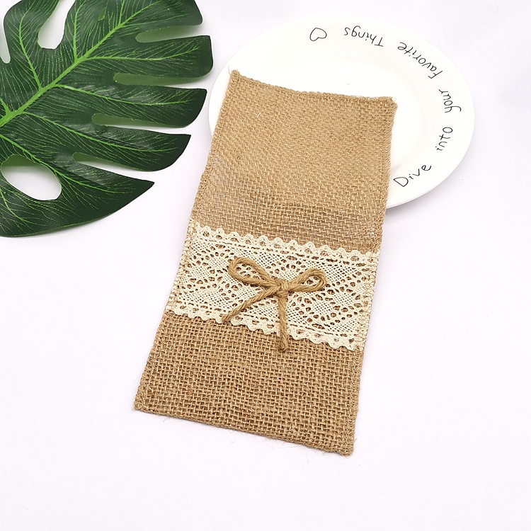 • リネンレースナイフとフォークバッグクリスマス装飾リネンナイフとフォークバッグ結婚式フェスティバルクラフト DIY