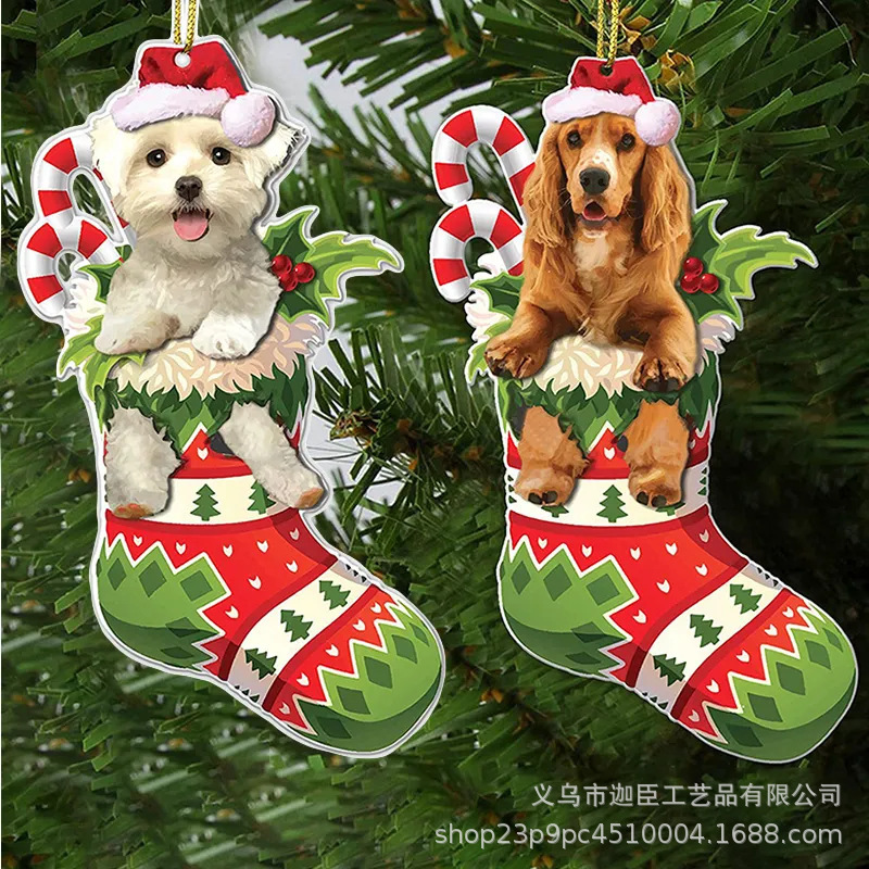 • クリスマス ソックス犬新しいクリスマス ツリーの装飾靴下ペンダント創造的なかわいいパーティーの装飾フラット