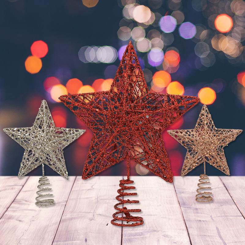 • 五芒星 アイアンデコレーション ツリートップ スター スパンコール 縦五芒星 クリスマスデコレーション用品