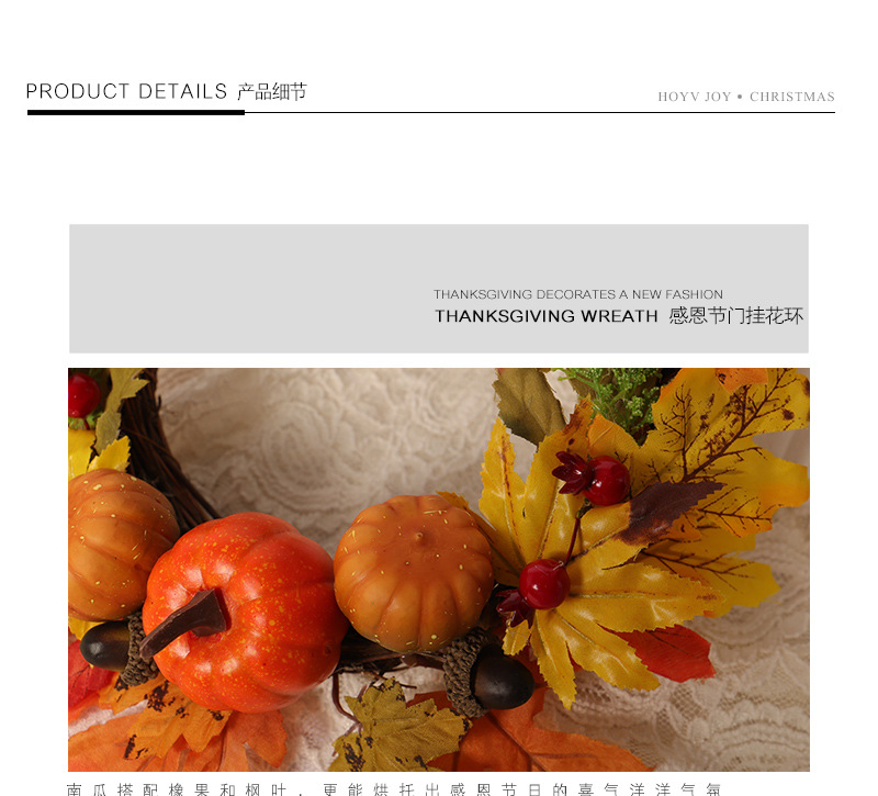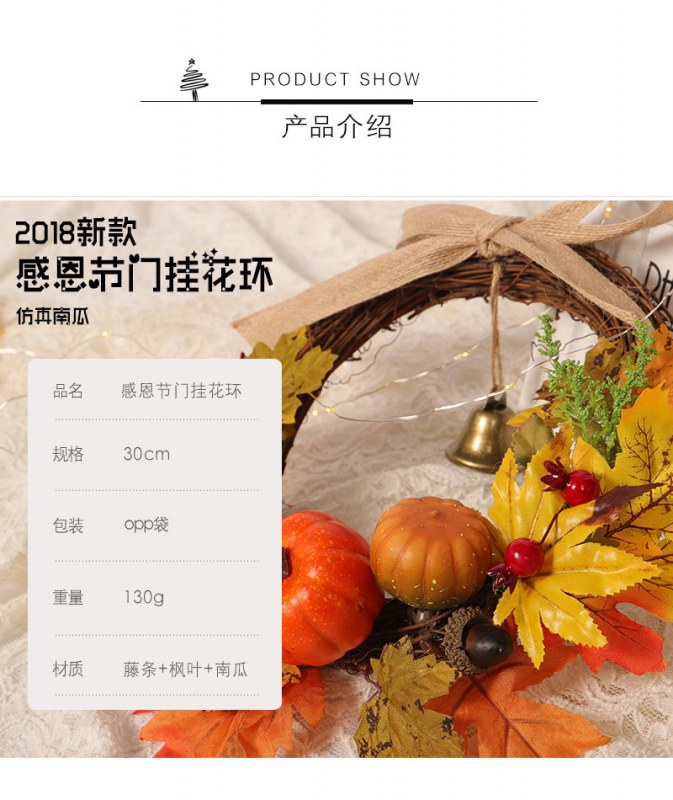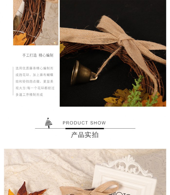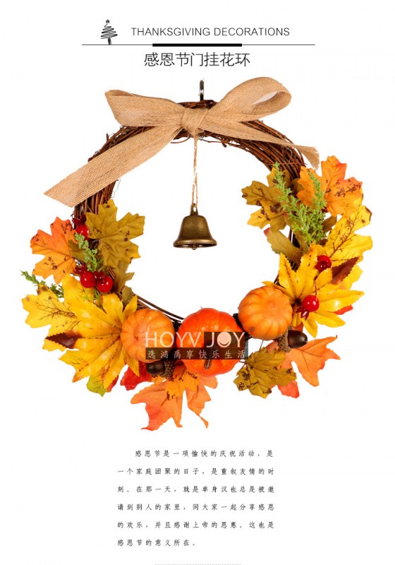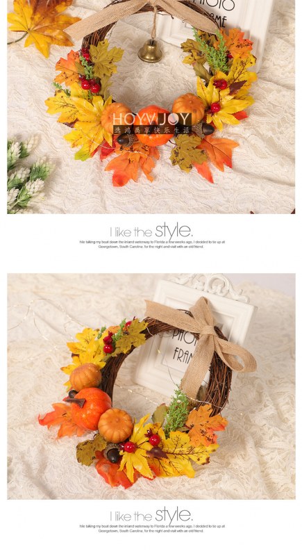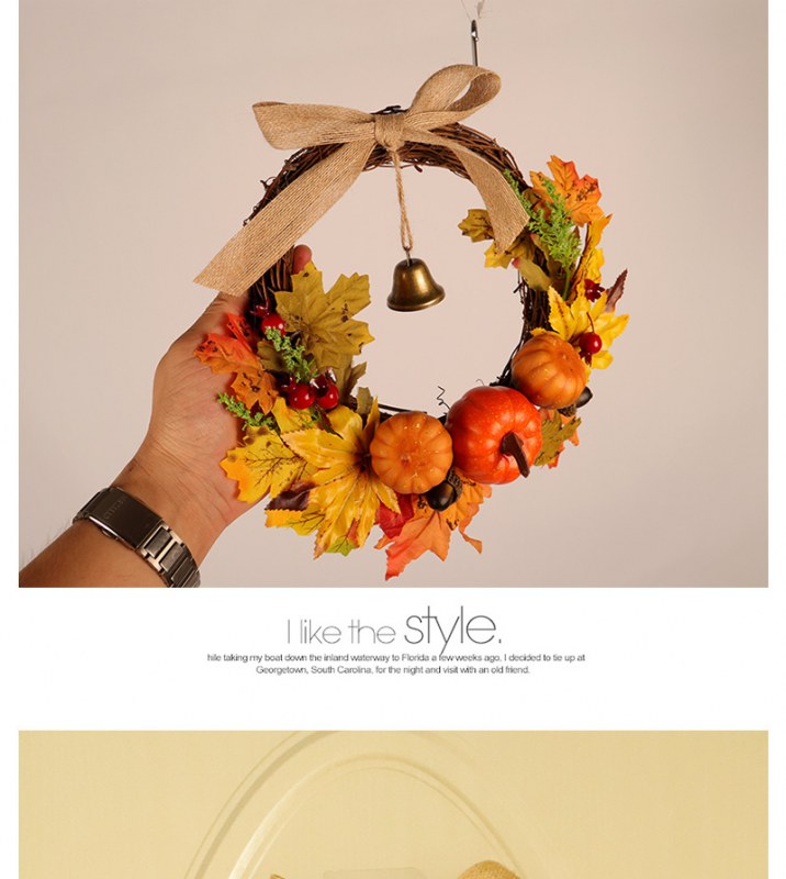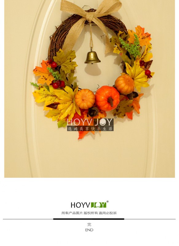 • 感謝祭秋の花輪収穫祭ベルカエデの葉カボチャのドア吊りハロウィンショッピングモール結婚式の装飾ペンダント