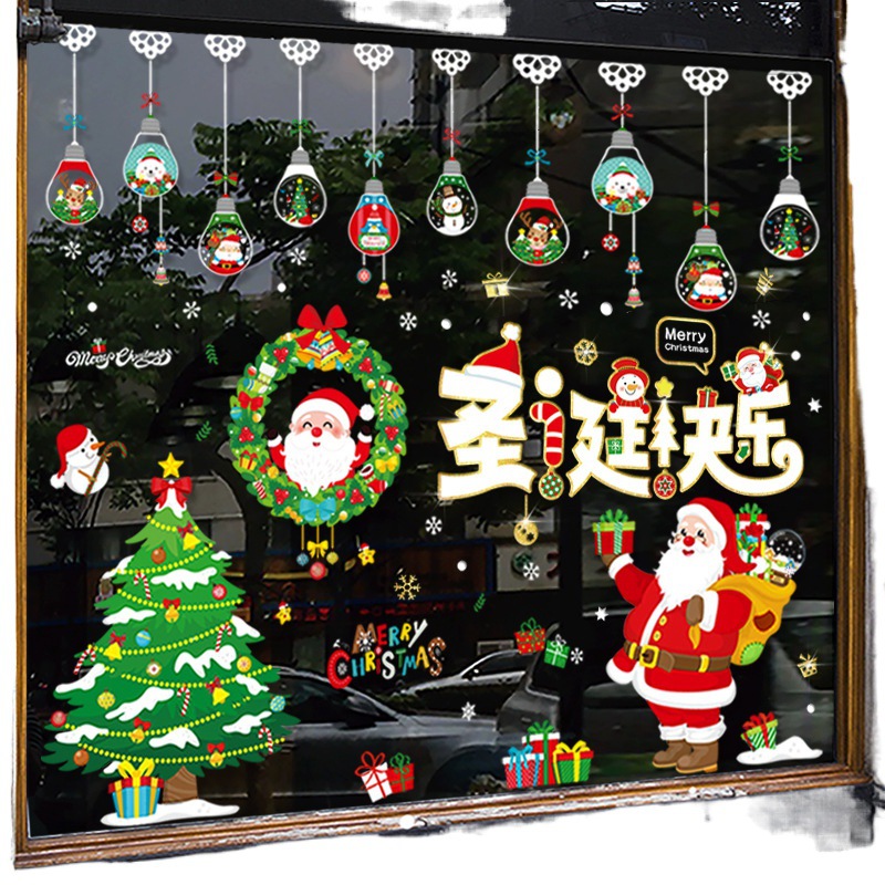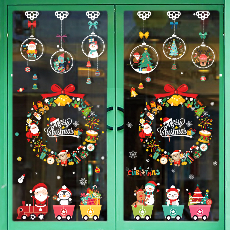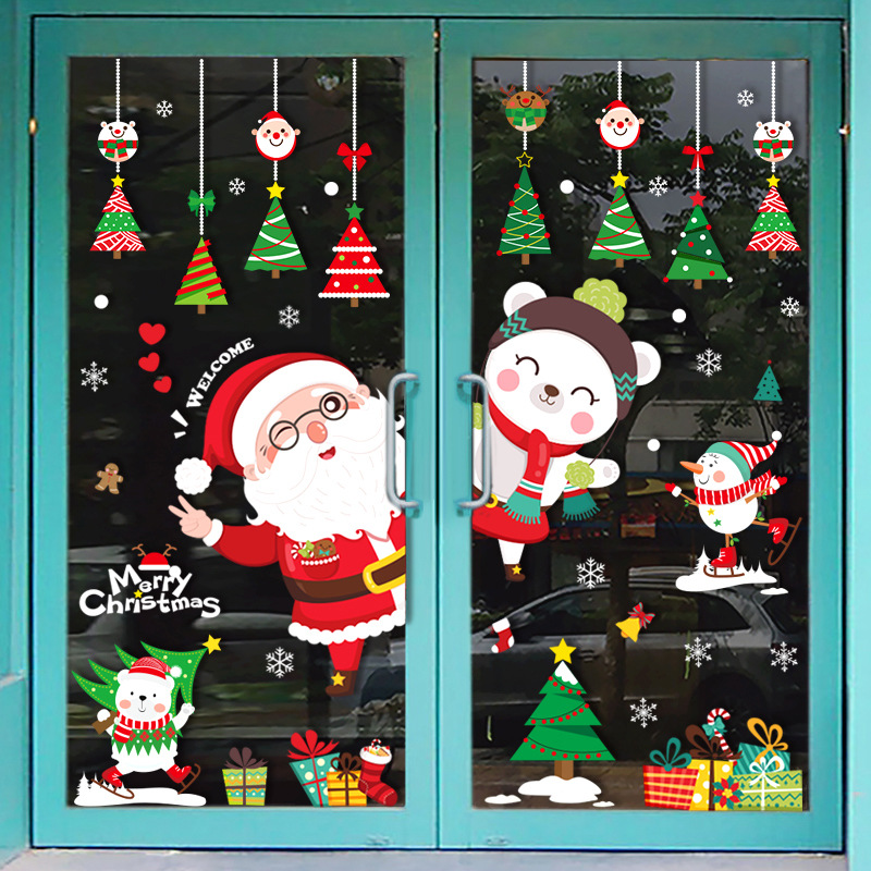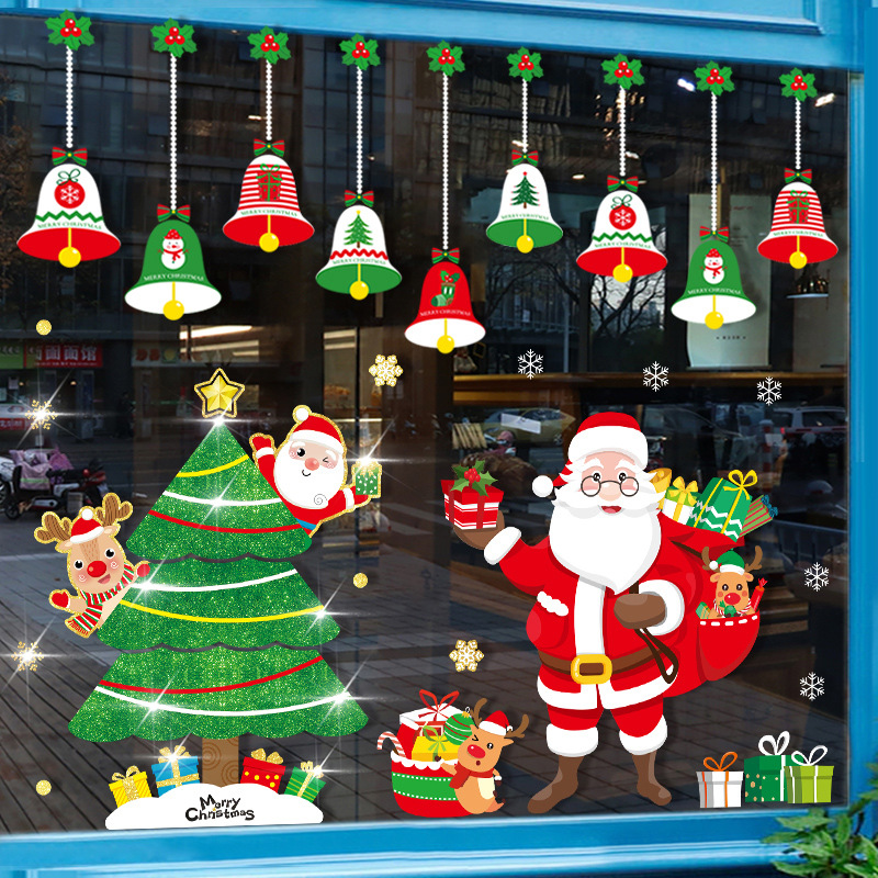 • クリスマス装飾クリスマスツリー静的ガラスドアステッカーショップシーンレイアウトウィンドウステッカーベルペンダントプルフラグ