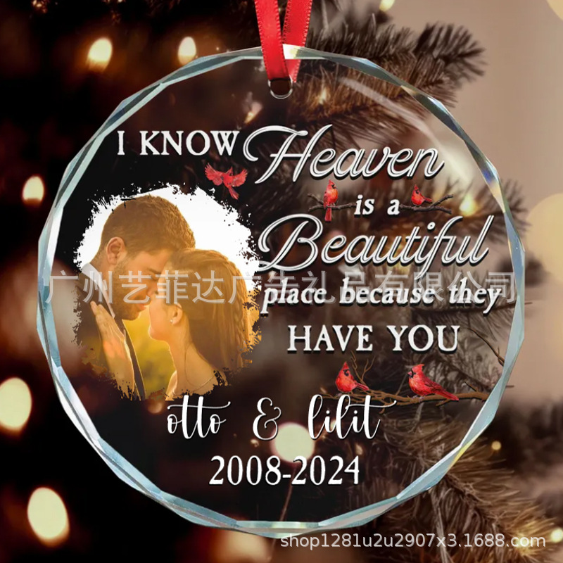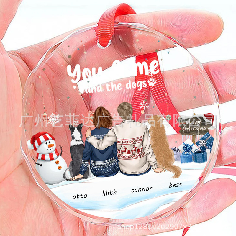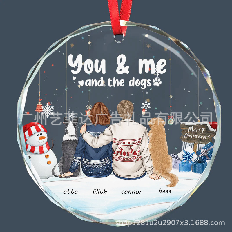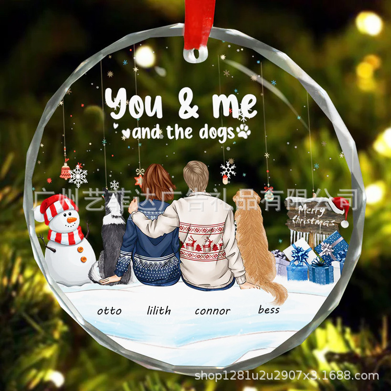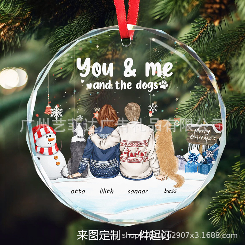 • クリスマス クリスタル ラウンド透明ペンダント カスタム コンテンツ漫画の母と子のクリスマス ツリー ペンダント