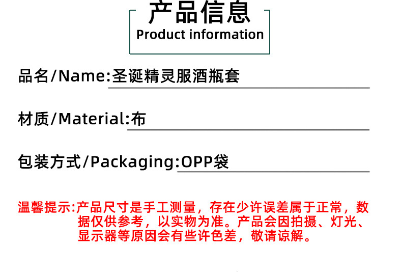 • クリスマスエルフコスチュームワインボトルセット装飾装飾品クリスマスかわいい赤ワインセットテーブル雰囲気装飾小道具