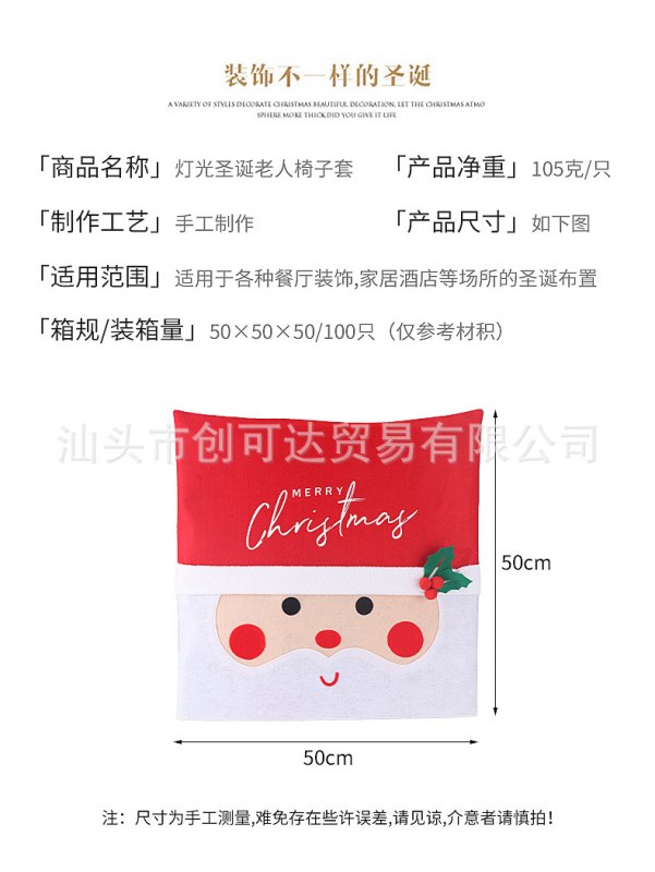 • 発光ギフト LED 発光サンタクロースクリスマス椅子バックカバークリスマスパーティー用品お祝い装飾