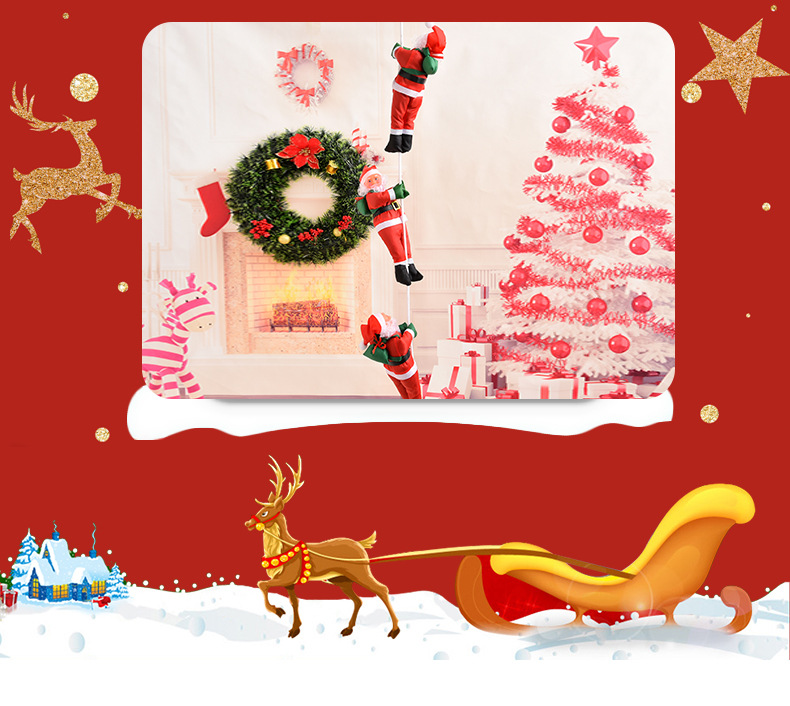 • クリスマスツリー飾り 30cm はしごクライミングロープ サンタクロース人形 クリスマスペンダント