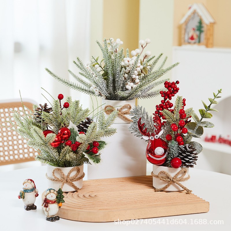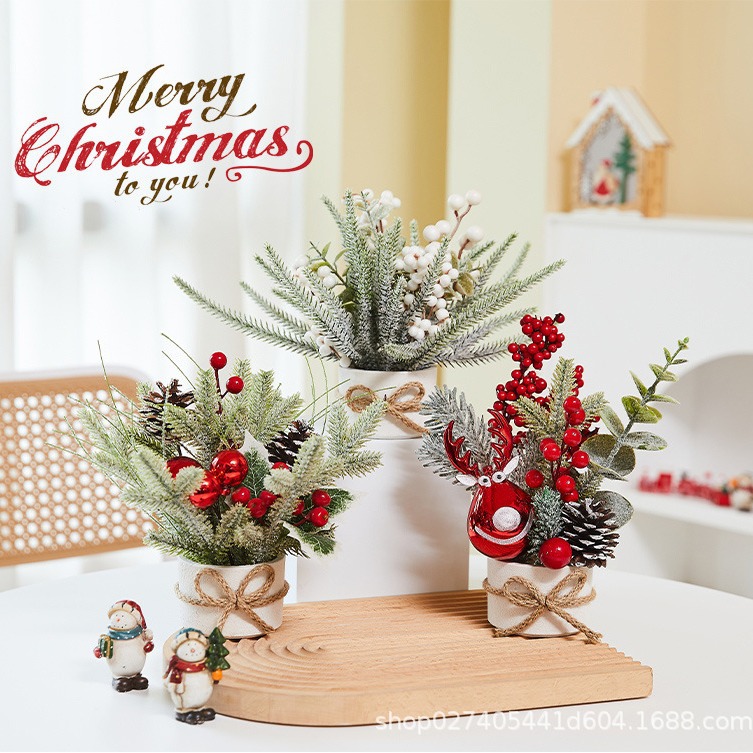 • 2024 新しいクリスマスミニ鉢植え人工小さなクリスマスツリークリスマスデコレーション