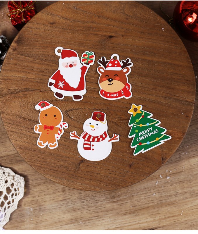 • クリエイティブクリスマスタグクリスマスギフトキャンディクッキースノーフレークスナック包装グリーティングカード装飾ペンダント5個
