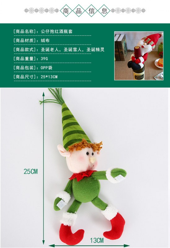 • クリスマスデコレーション用品サンタクロース雪だるまハグ赤ワインセットシャンパンボトルセットバーレストラン装飾アレンジメント