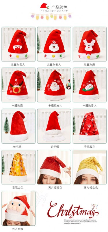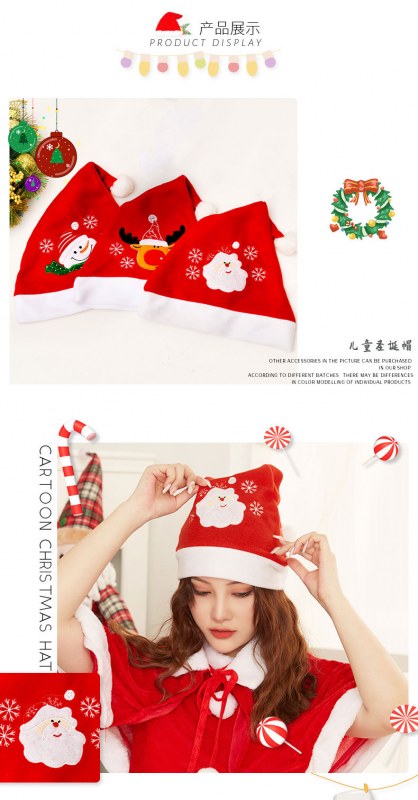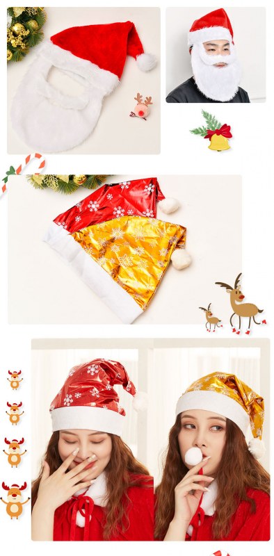 • クリスマスハット 子供、大人、雪だるま、老人、鹿、豪華な枝角へのクリスマスプレゼント、装飾的なドレスアップハット