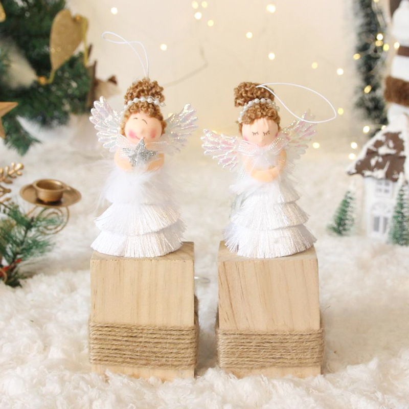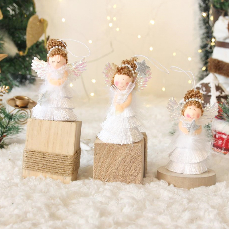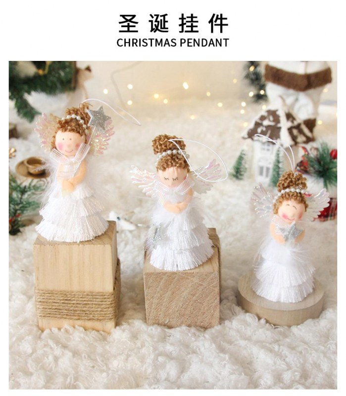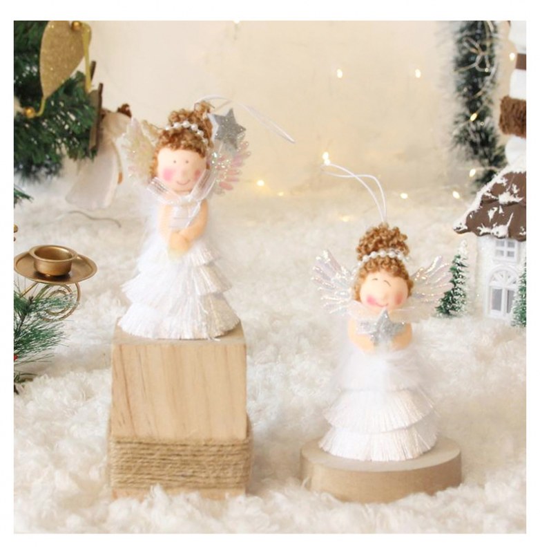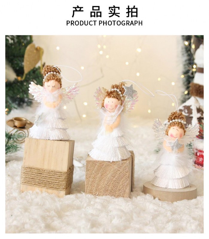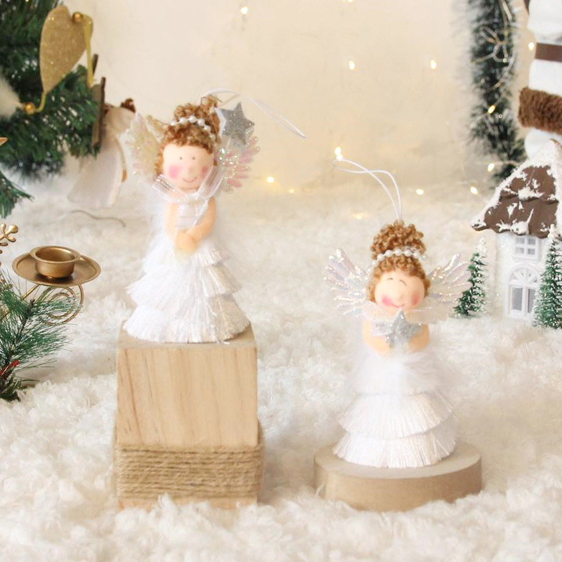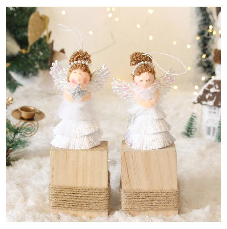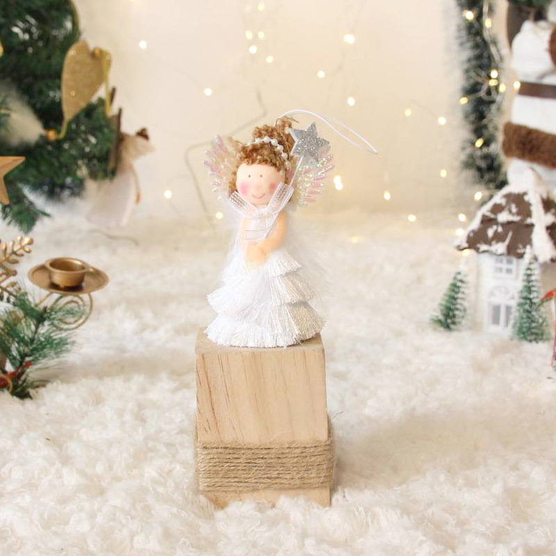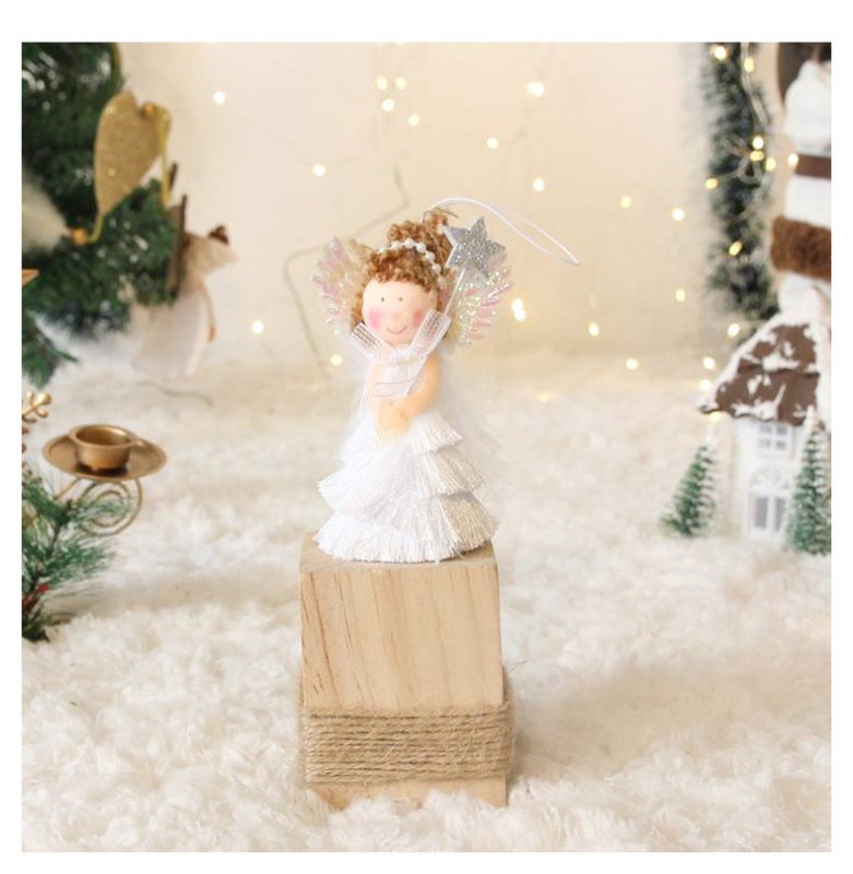 • Cunjie 新しいクリスマス天使生地タッセルスカート女の子クリスマス人形ペンダントクリスマス装飾用品