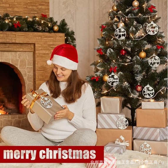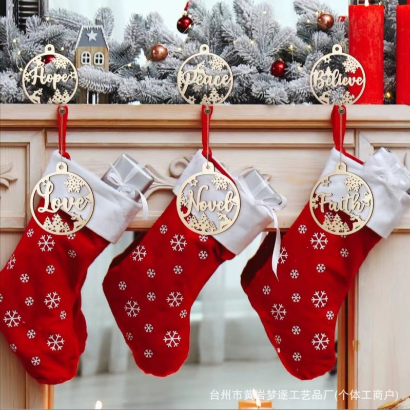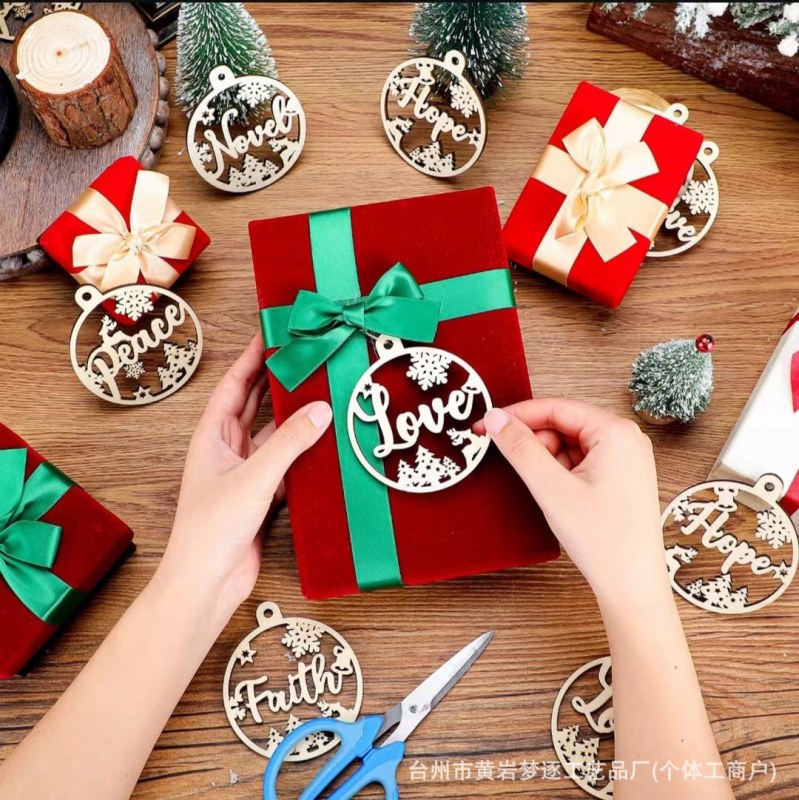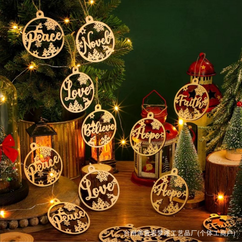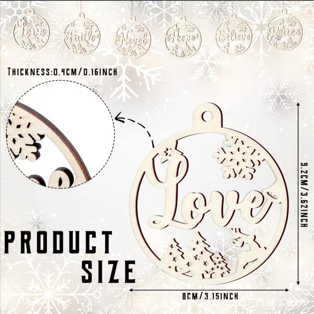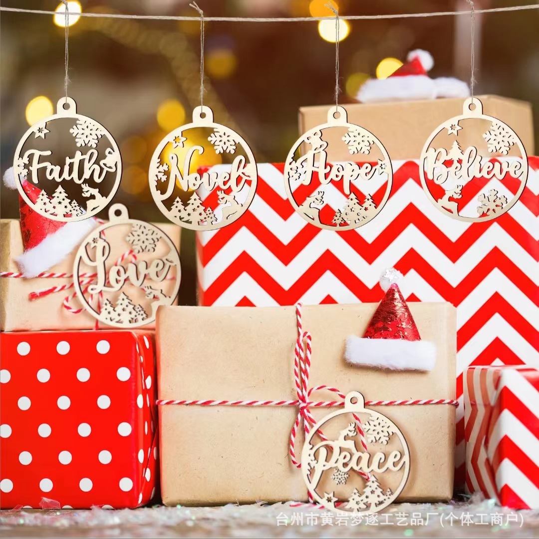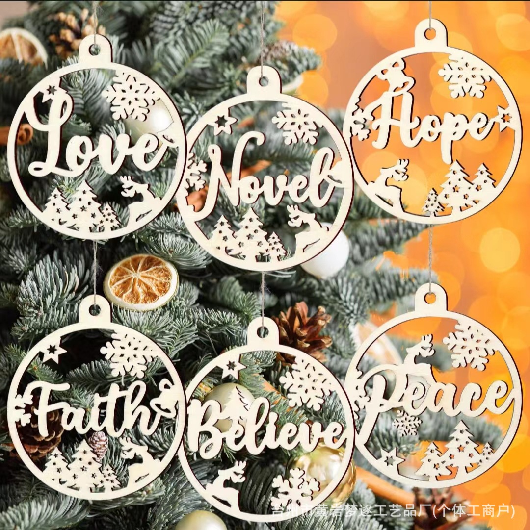 • 24 個クリスマスぶら下げ木製装飾品レター中空クリスマスツリーペンダントギフトタグホリデーパーティーの装飾