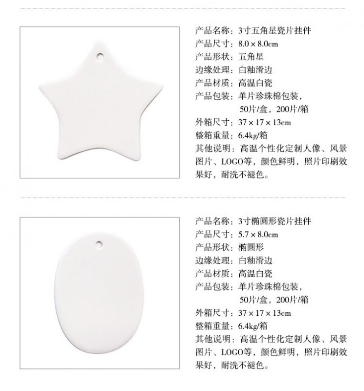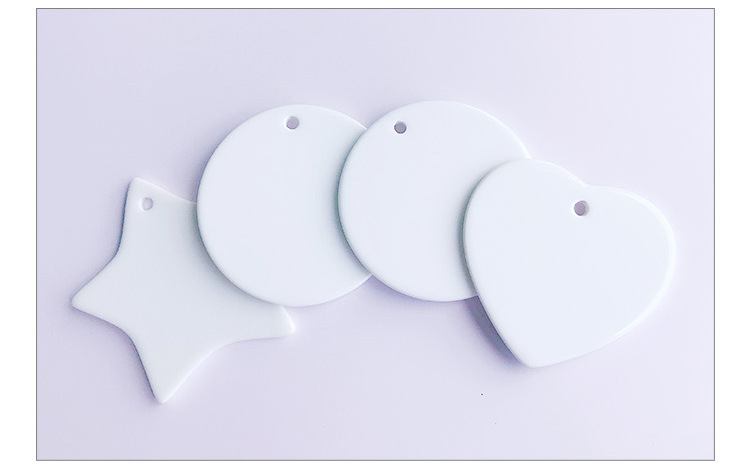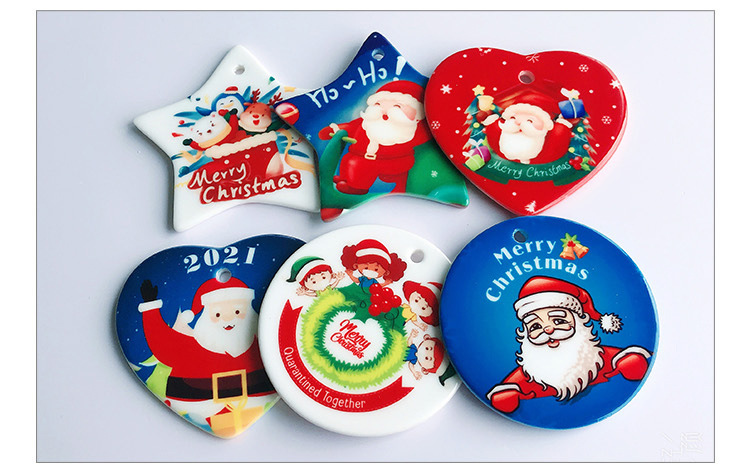 • クリスマス磁器タイルペンダント 3 インチラウンドハート型五芒星ペンダントコーティングされたセラミック装飾熱伝達パーソナライズプリント