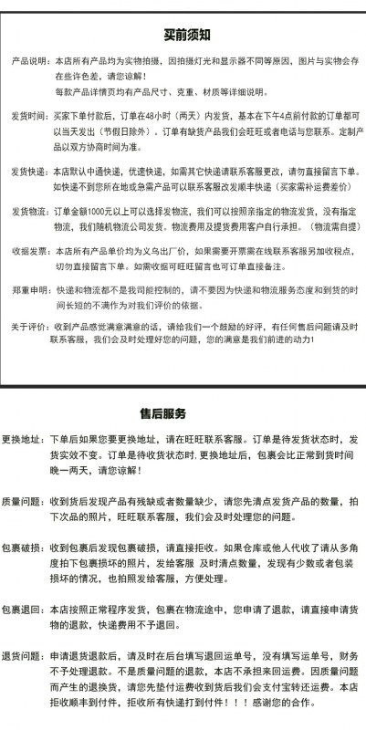 弊社が取り扱っている商品は、自社の海外工場から直送しています。ご入金が確認でき次第に商品を発送いたします。ご注文殺到時や、ご注文数量、種類が多い場合は、発送が遅れる可能性がございます、ご了承ください。ご注文商品の中に在庫がない商品につき、その商品のみキャンセルさせていただき、在庫のある商品のみをまとめて発送させていただきます。また、ご注文後の商品追加や、内容変更、同梱などはお受付しておりません。