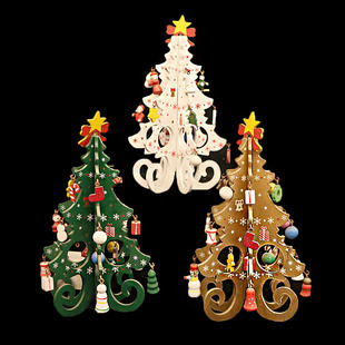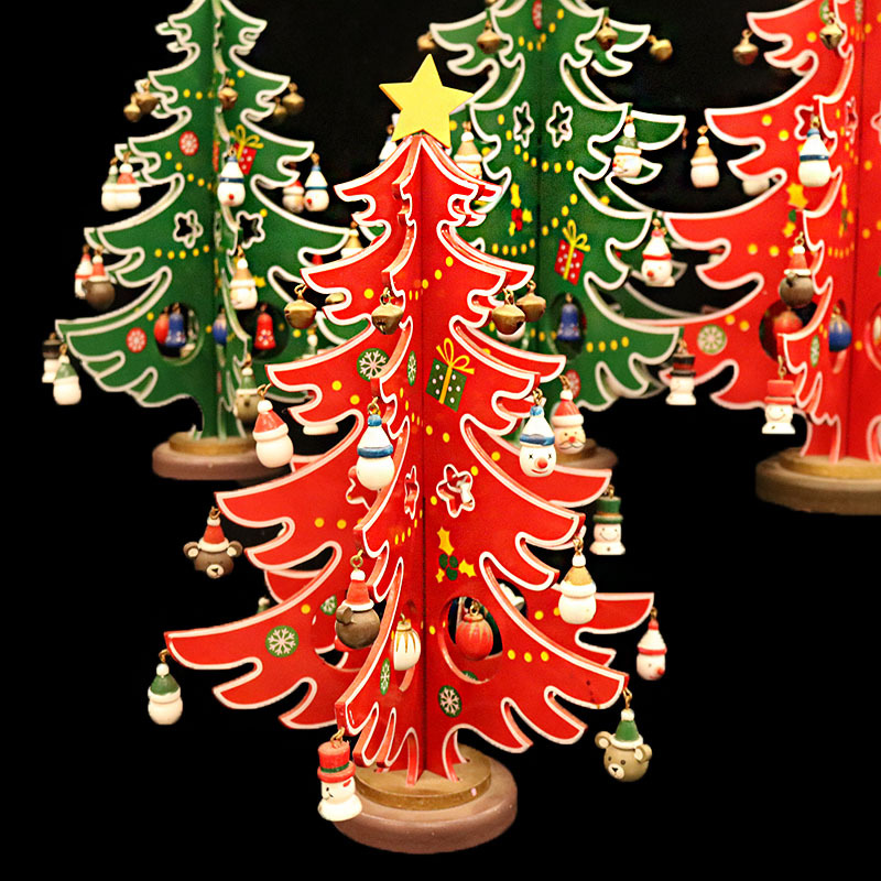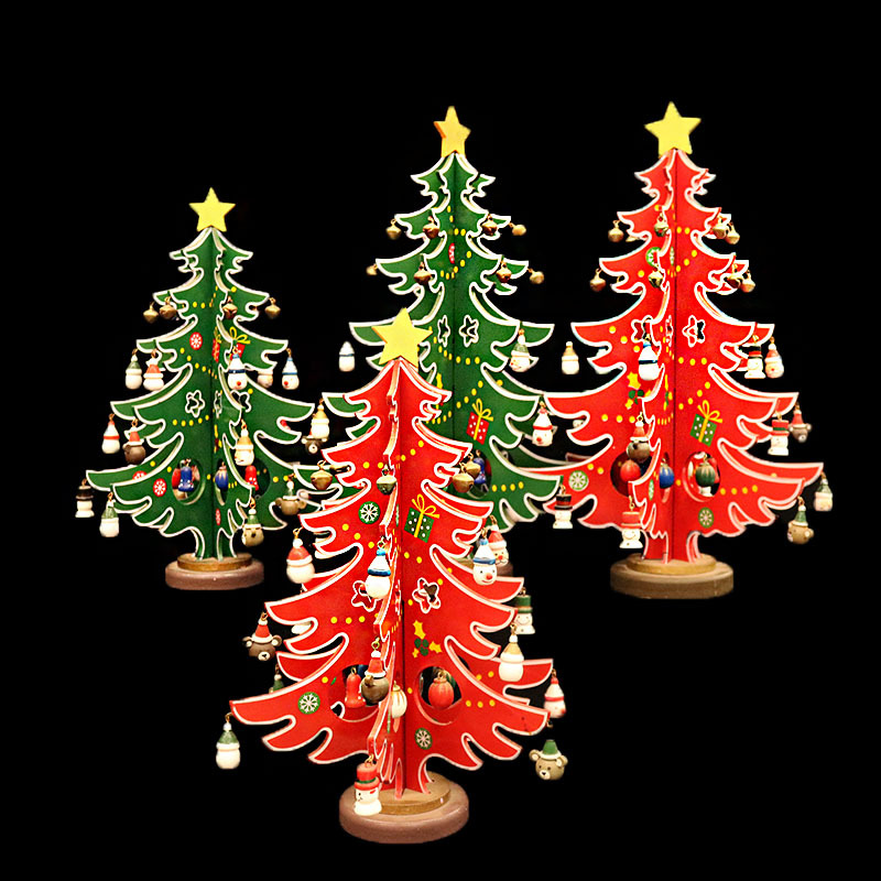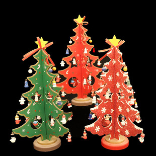• クリエイティブクリスマス装飾木製クリスマスツリー DIY 手作り 3 ピースクロスツリー窓装飾小道具