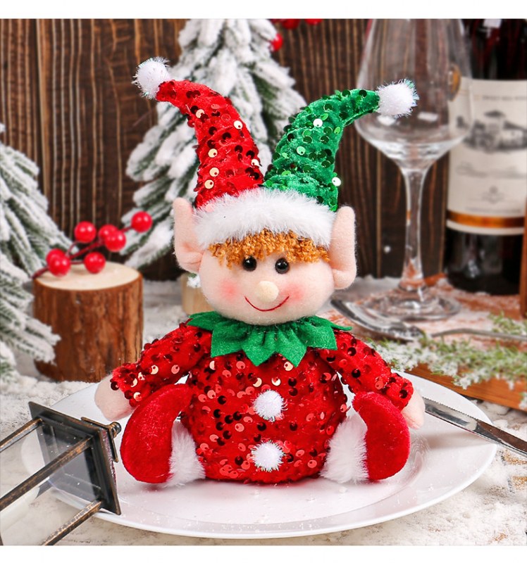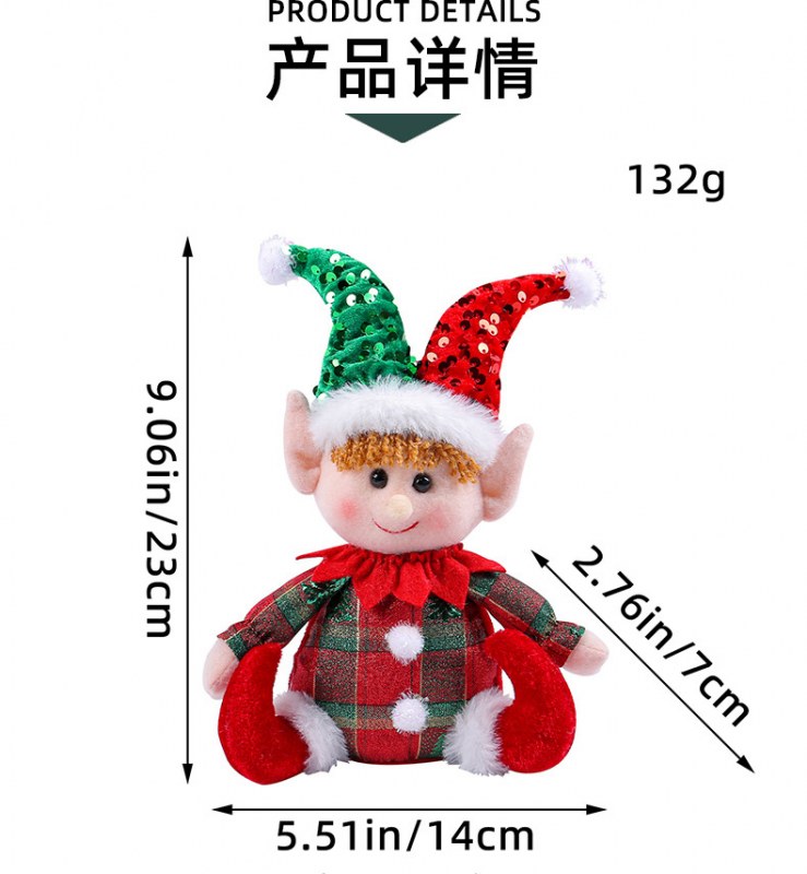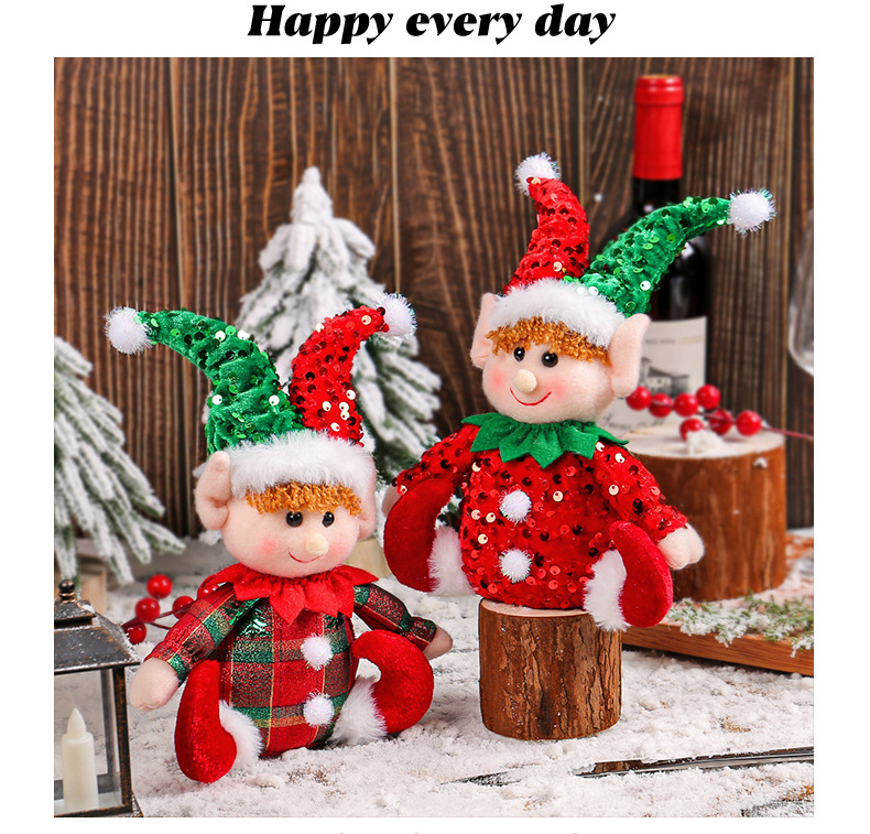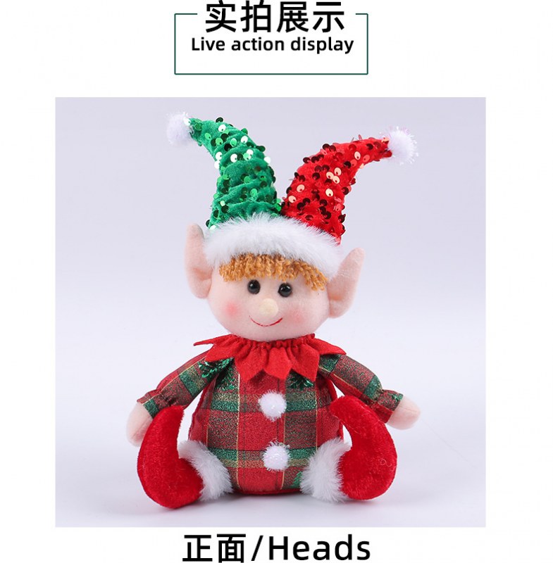 • かわいいクリスマスエルフ座っている人形窓飾りルドルフスパンコール帽子人形装飾装飾品卸売