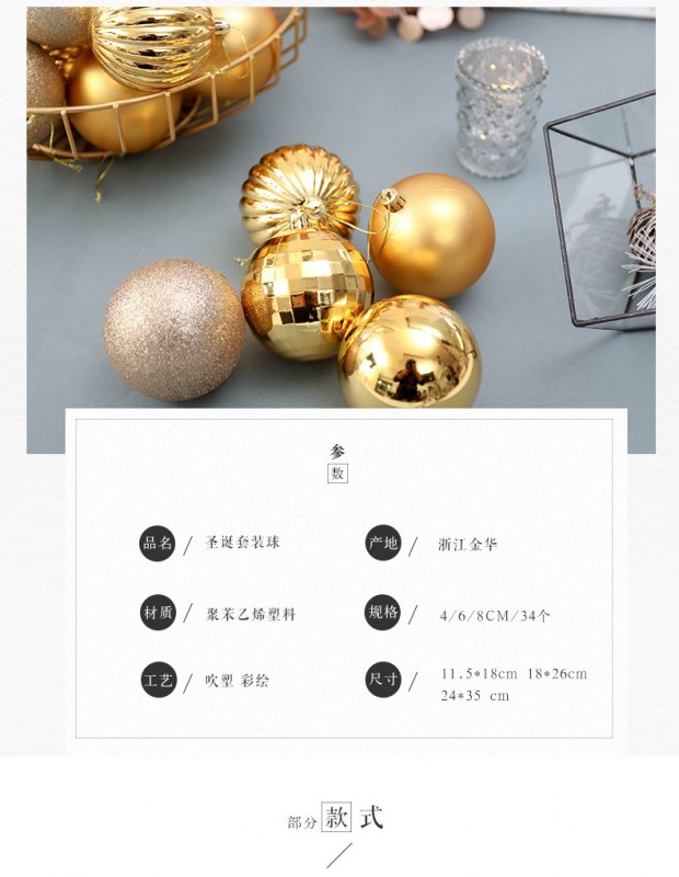 • 34個のクリスマスボールセット、6cmクリスマスデコレーション、クリスマスツリーデコレーションボール、特殊な形のボール