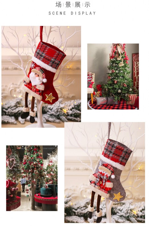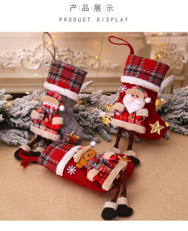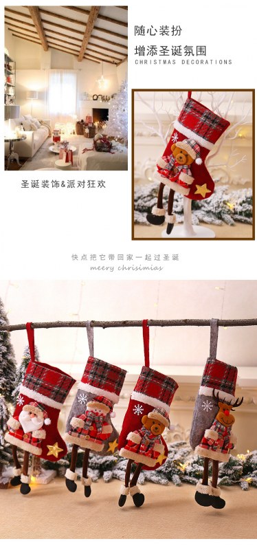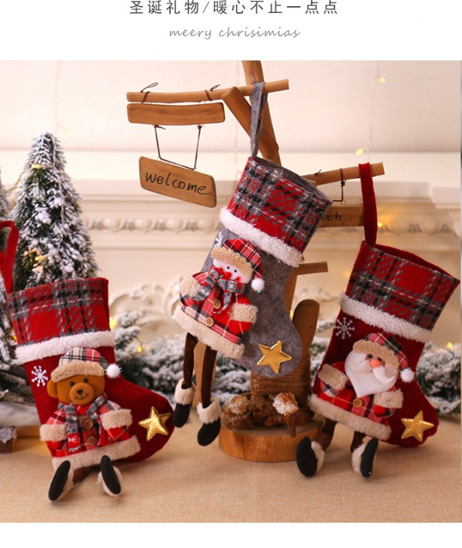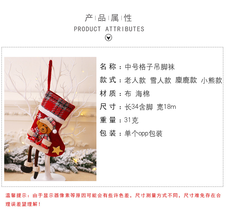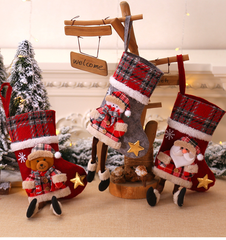 • クリスマス中チェック柄靴下クリスマスツリーの装飾品子供祭りキャンディーバッグ家の装飾用品卸売