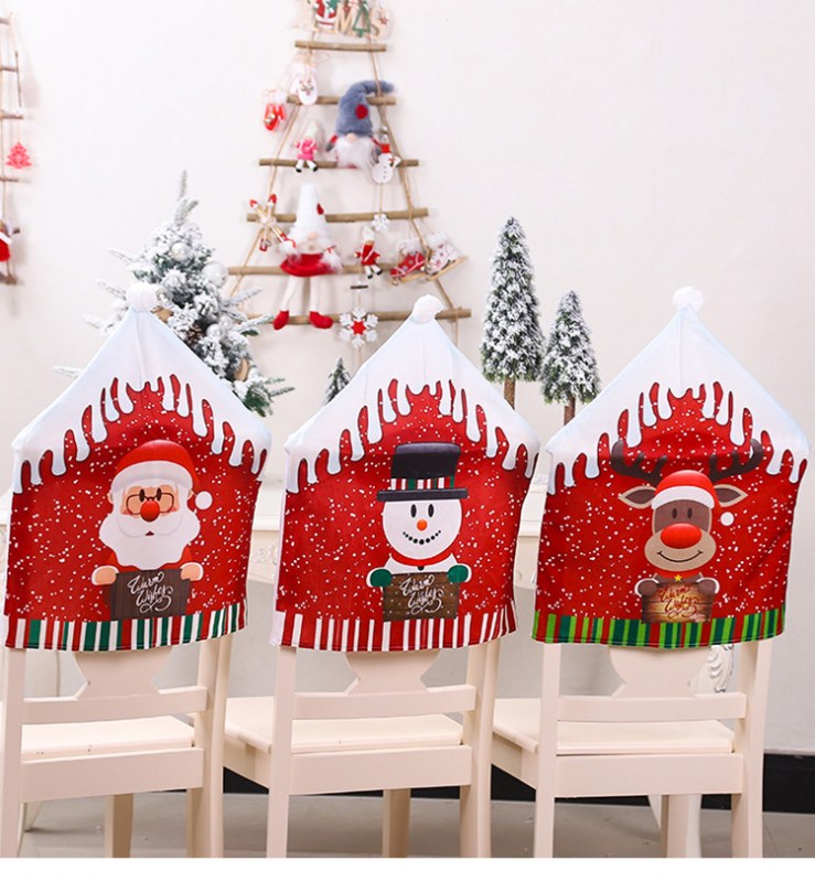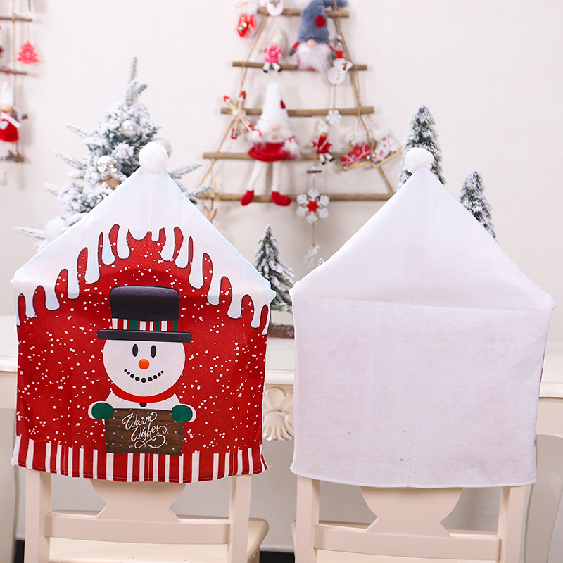 • クリスマス新プリント椅子カバー漫画老人雪だるまスツールカバークリスマス大きな帽子椅子カバー家の装飾