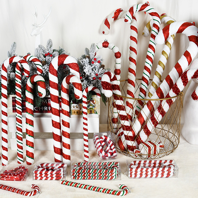 • クリスマスデコレーション、ペンダント、赤、白、緑塗装グリッター松葉杖、インターネット有名人の写真撮影小道具15-90CM