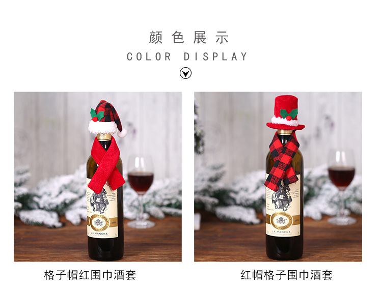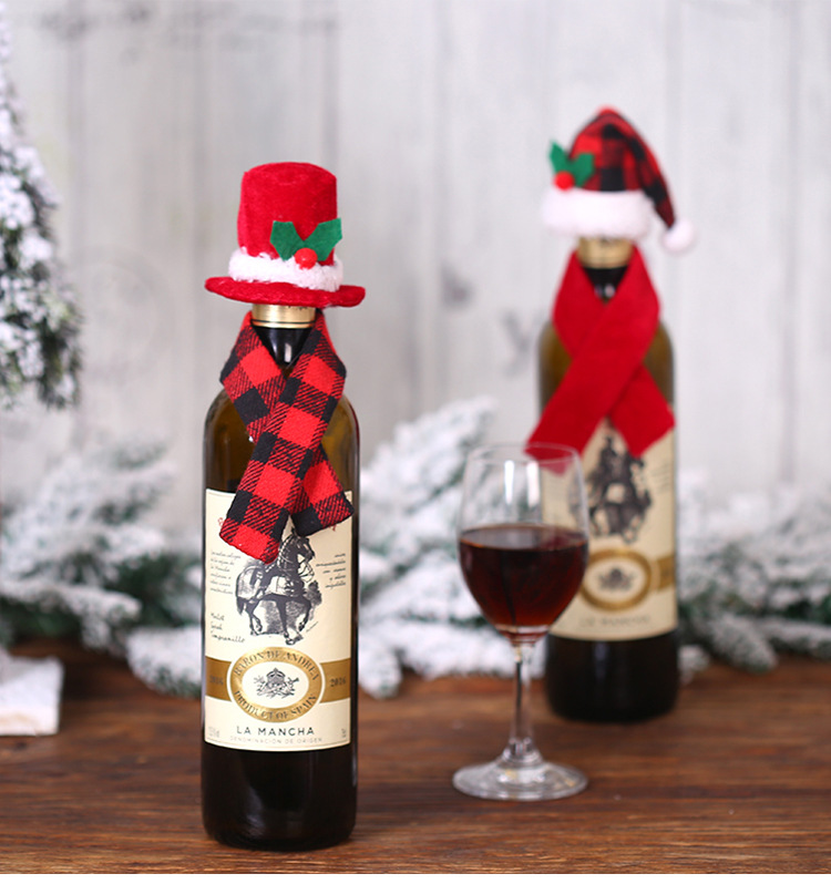 • クリスマスクリエイティブデコレーションスカーフ帽子ツーピースセット赤ワインボトルセットホテルレストラン装飾装飾用品
