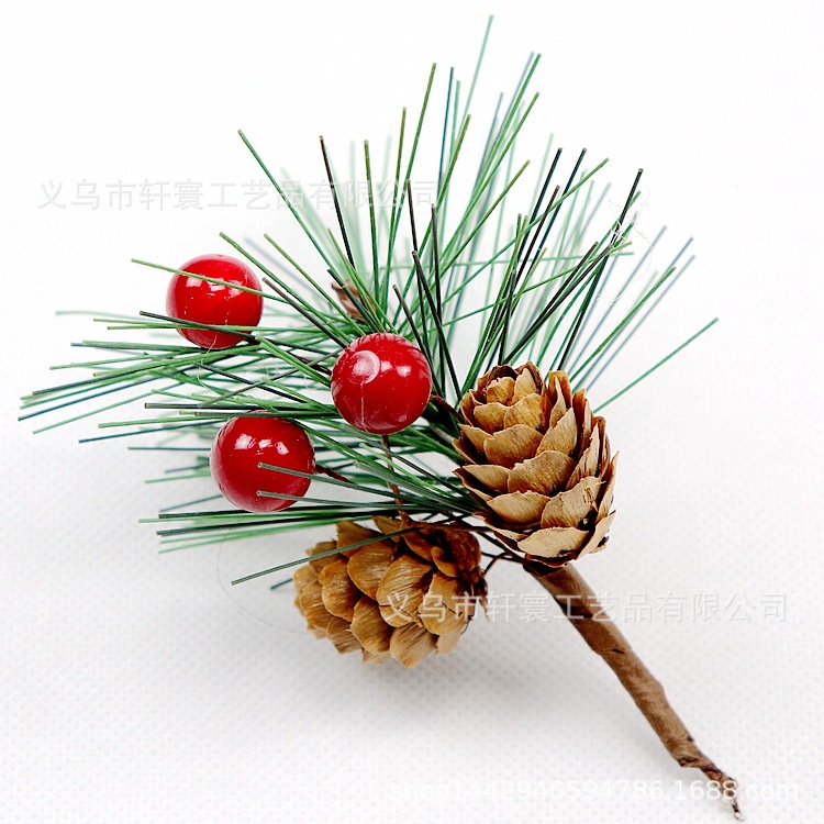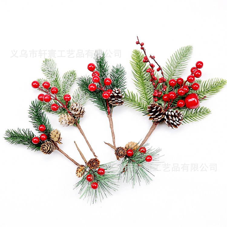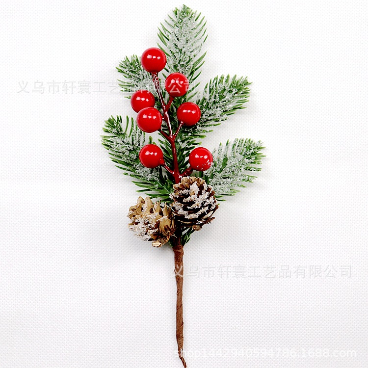 • 模擬クリスマス松ぼっくりの枝、雪片、松葉、ベリーの枝、休日の装飾、模擬植物、赤い果実のベリーの枝