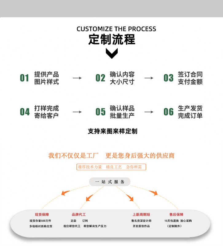 弊社が取り扱っている商品は、自社の海外工場から直送しています。ご入金が確認でき次第に商品を発送いたします。ご注文殺到時や、ご注文数量、種類が多い場合は、発送が遅れる可能性がございます、ご了承ください。ご注文商品の中に在庫がない商品につき、その商品のみキャンセルさせていただき、在庫のある商品のみをまとめて発送させていただきます。また、ご注文後の商品追加や、内容変更、同梱などはお受付しておりません。