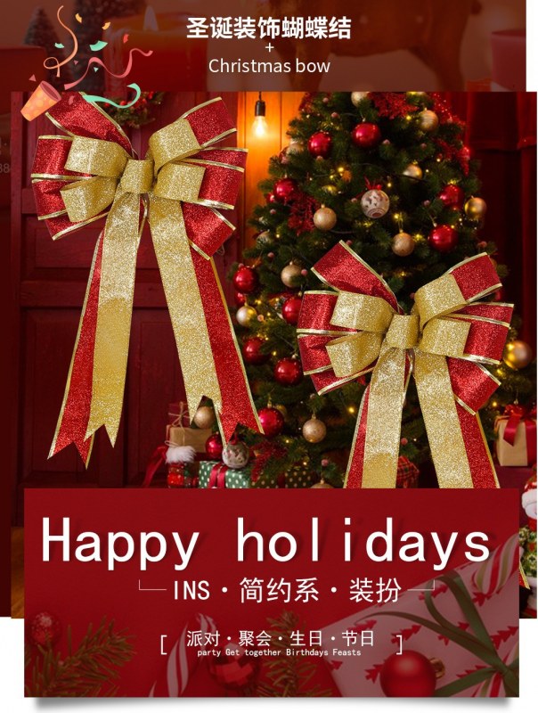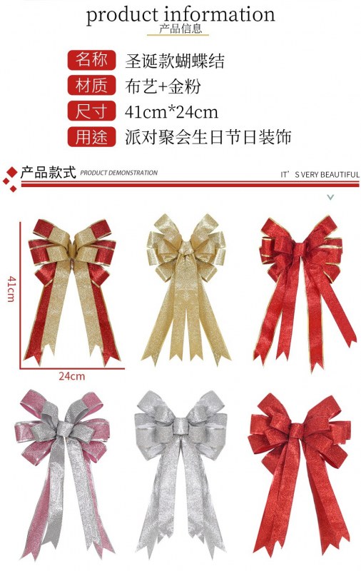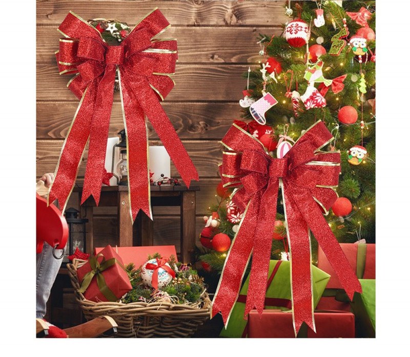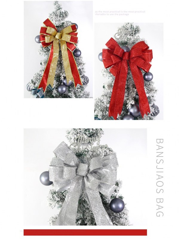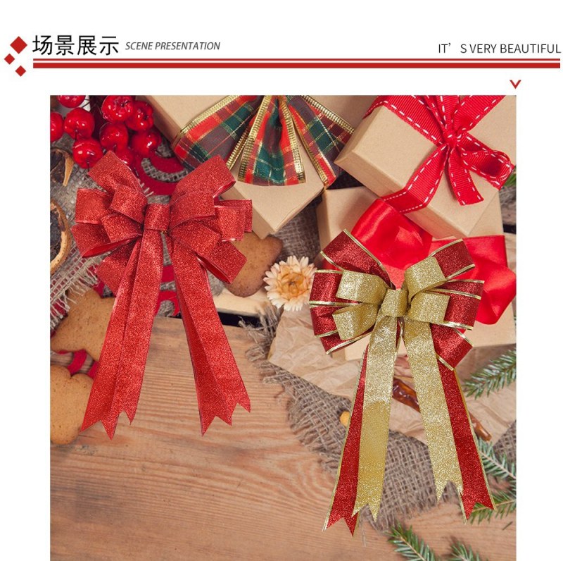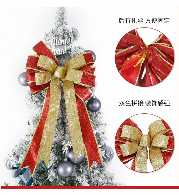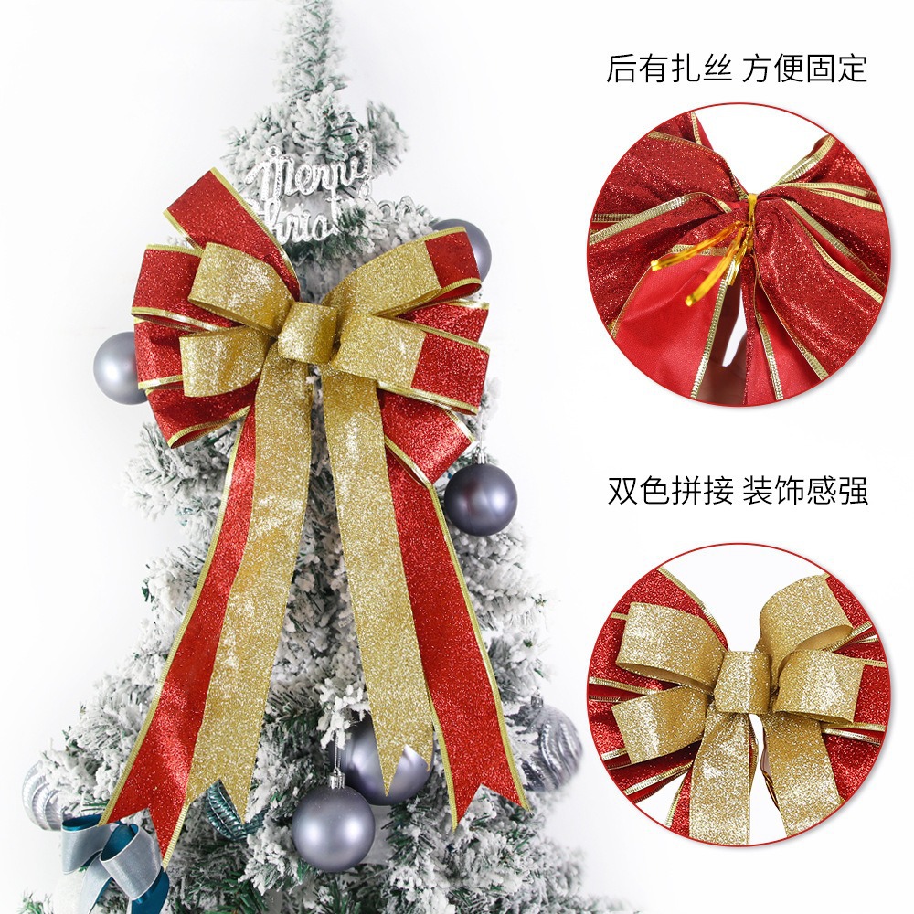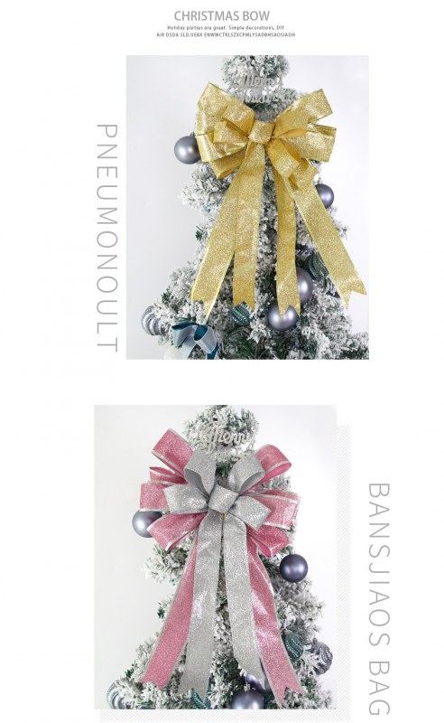 • 新しいクリスマス装飾 2 色スプライシングリボンクリスマスツリートップペンダントアクセサリーグリッターピンクダブルリボン