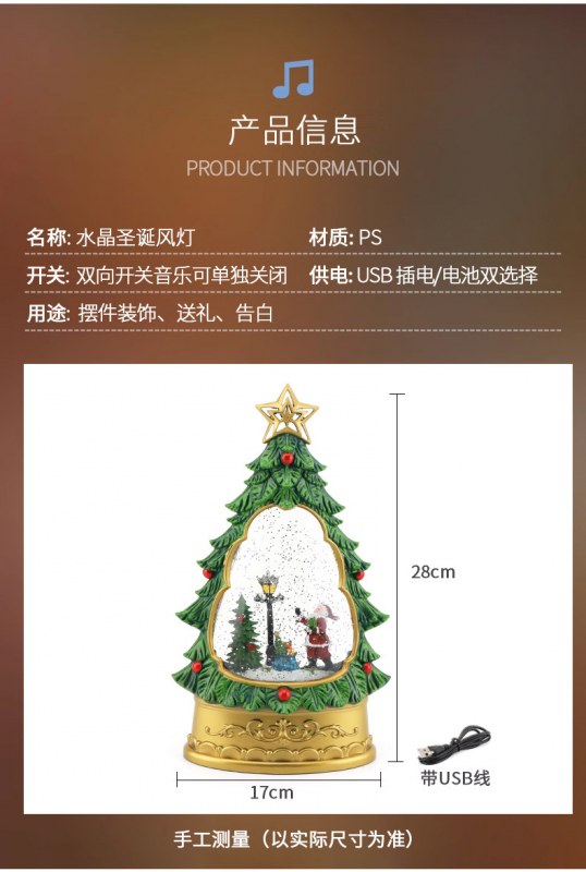 • クリスマス光る水で満たされたクリスマスツリー小さな風ランタンインテリアビュー高齢者のナイトライトデスクトップ装飾品装飾ギフト