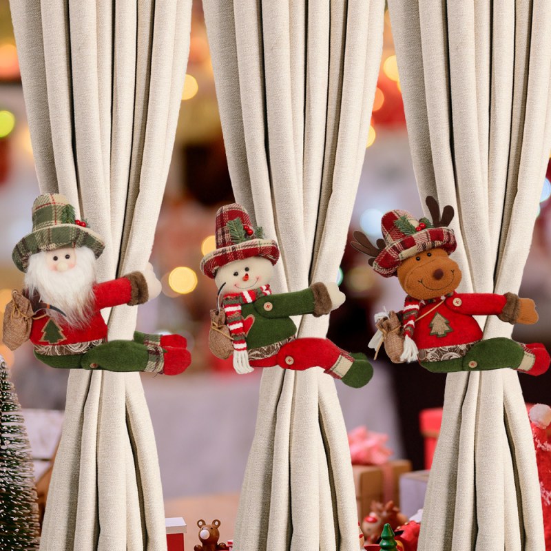 • クリスマスカーテンバックル漫画模造リネン人形装飾レストランホテル装飾ぬいぐるみカーテンハグ