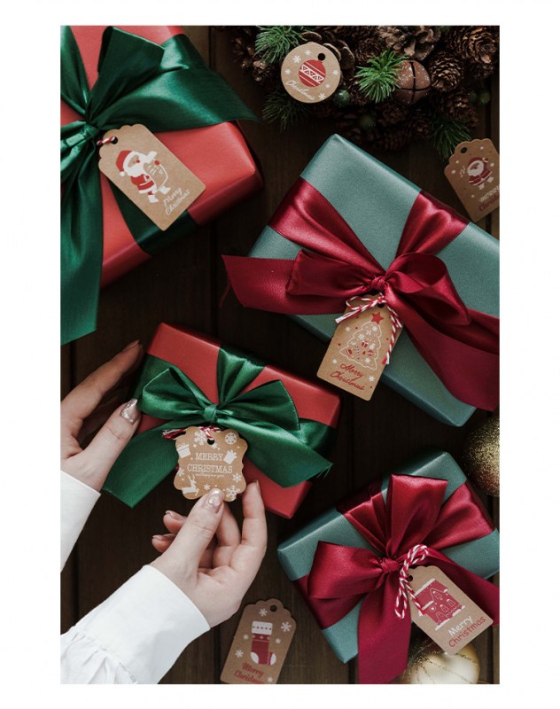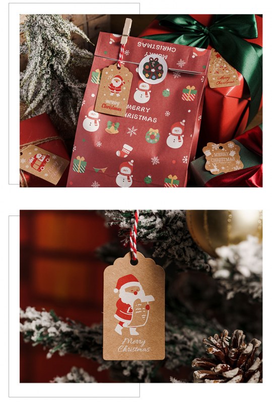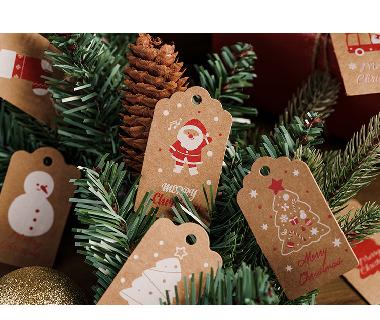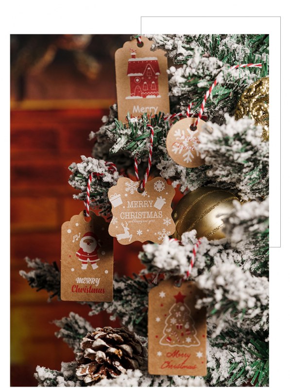 • 厚みのある新しいクラフト紙クリスマスハングタグクリスマスデコレーションカードギフトボックスハンガーロープ付き