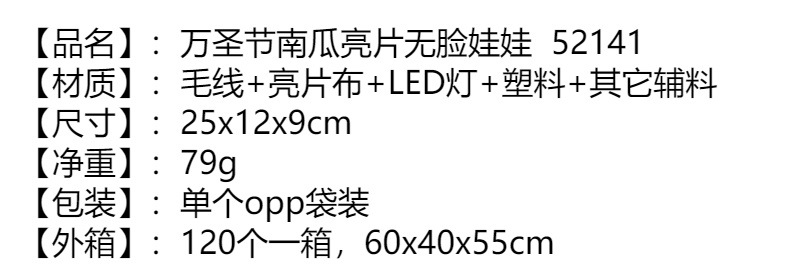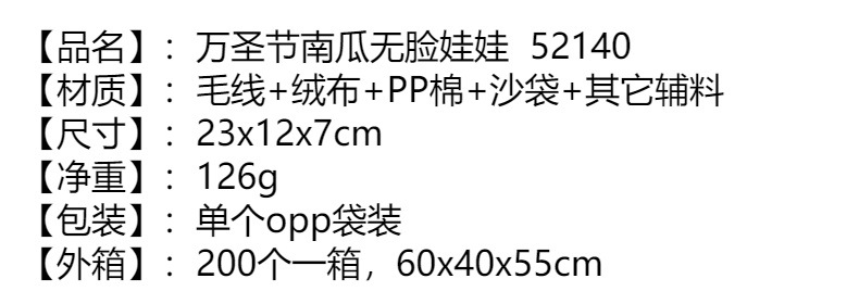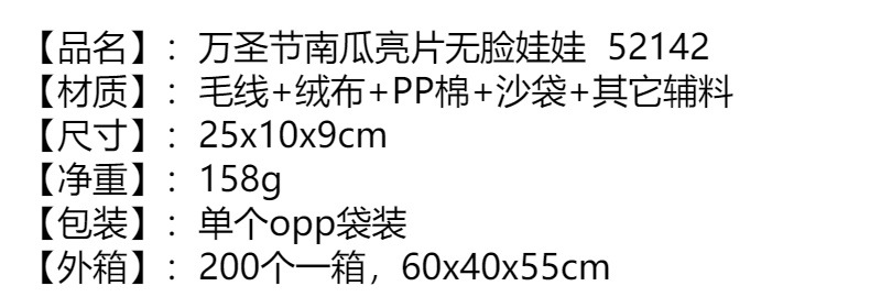 • ハロウィンカボチャの顔のない人形の装飾かわいい窓の装飾スパンコールドワーフ老人人形漫画卸売