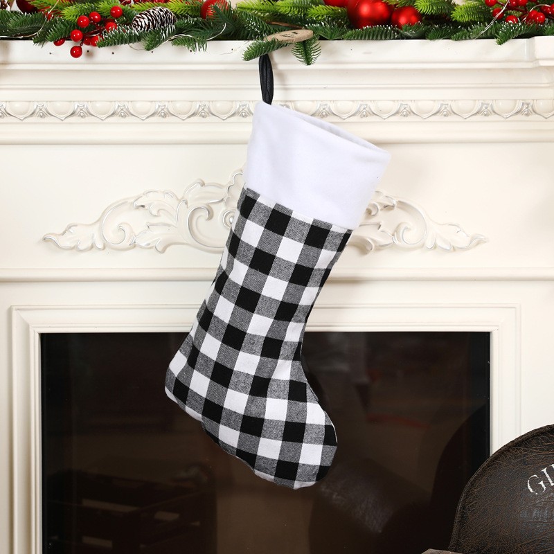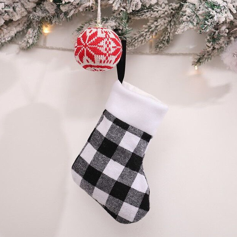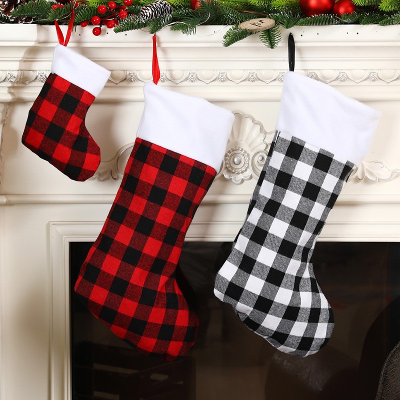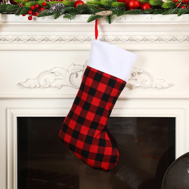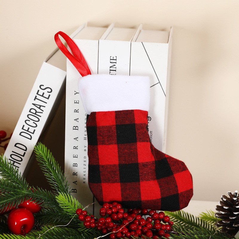 • クリスマスデコレーション赤と黒のリネンチェック柄ぬいぐるみエッジクリスマスストッキングオーナメントギフトバッグギフトバッグキャンディーバッグペンダント