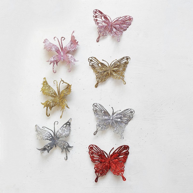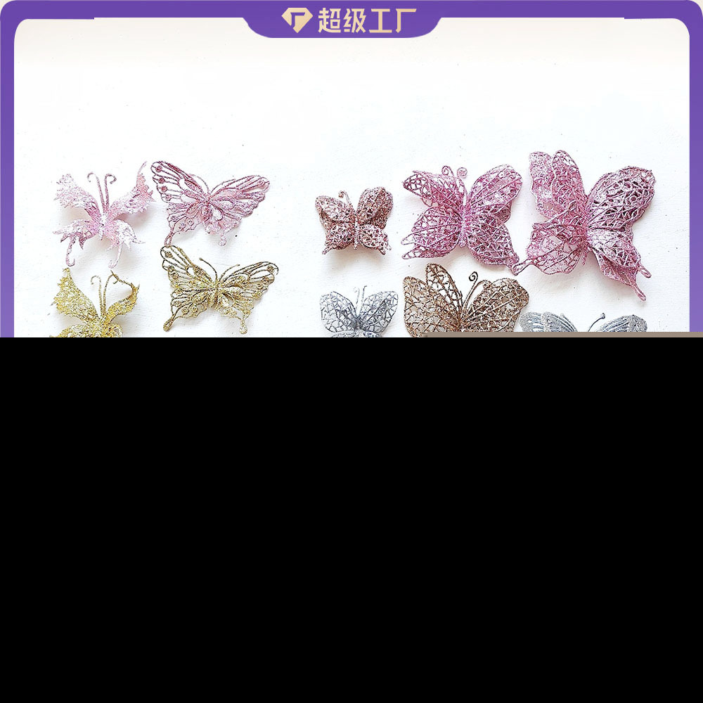 • クリスマス装飾ゴールドバタフライ写真撮影小道具クリスマスツリー装飾ペンダント結婚式の装飾ゴールドバタフライ