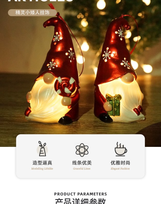 • クリスマスクリエイティブドワーフペンダントクリスマスツリー発光装飾ヨーロッパ樹脂工芸品ドワーフ家の装飾