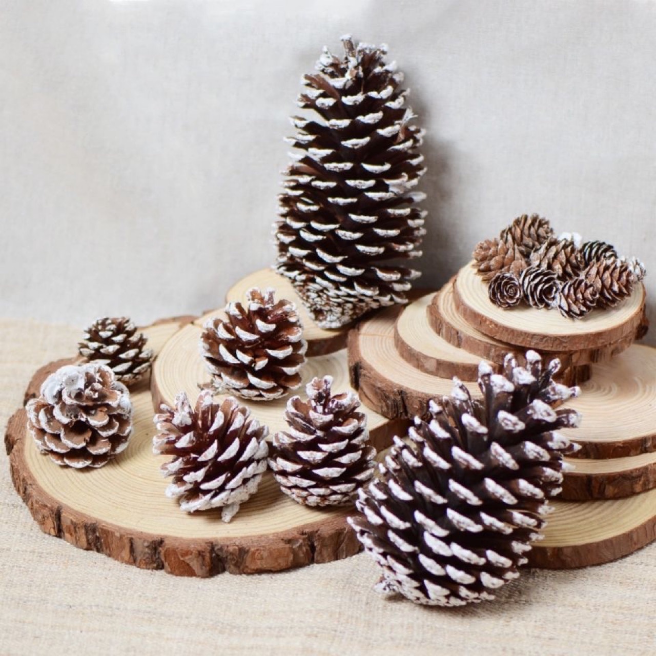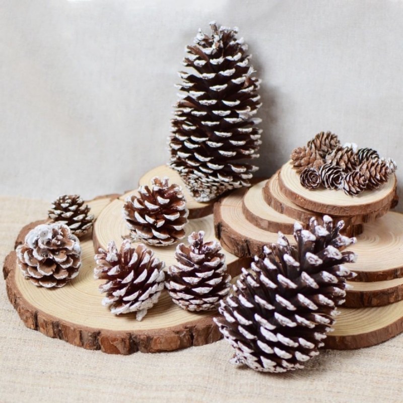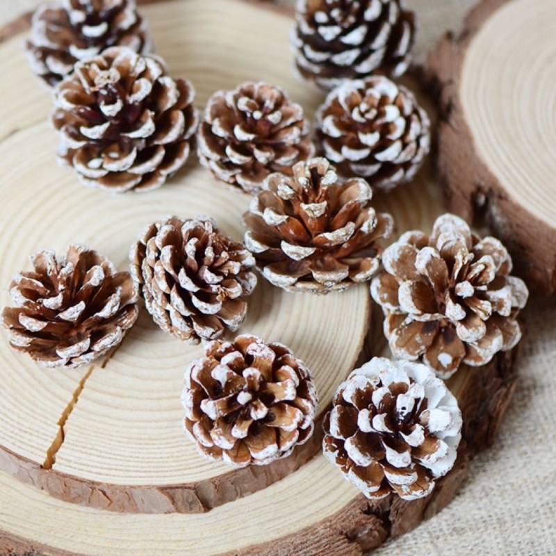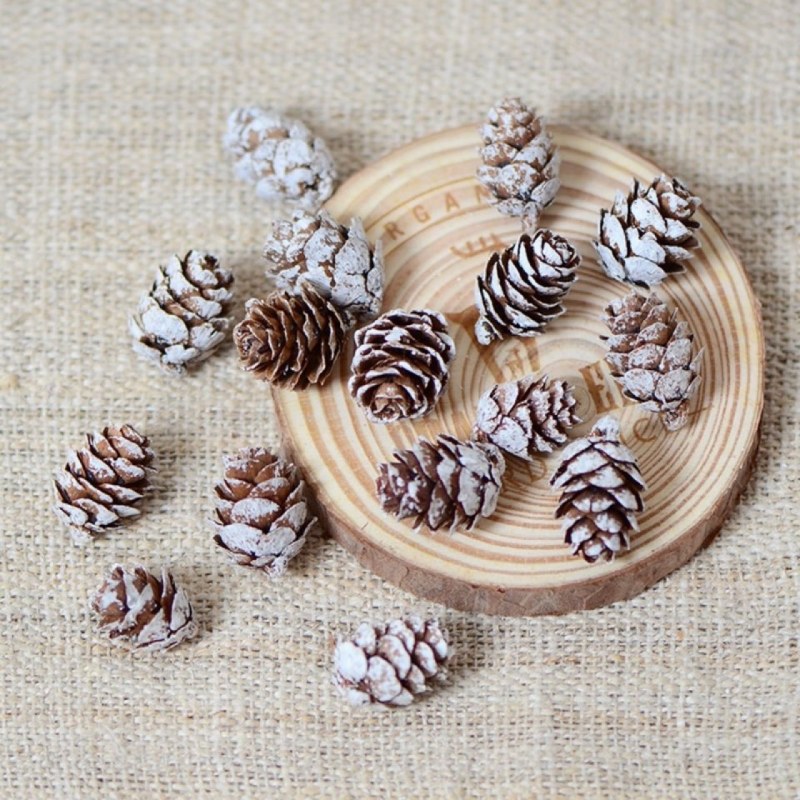 • スノーフレーク松ぼっくり クリスマスツリー飾り 白松ぼっくり クリスマスアレンジメント ドライガーランド素材 松の花 松ぼっくり
