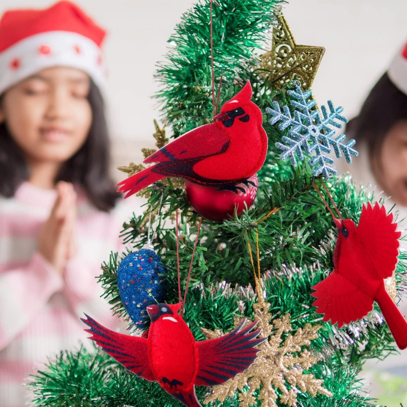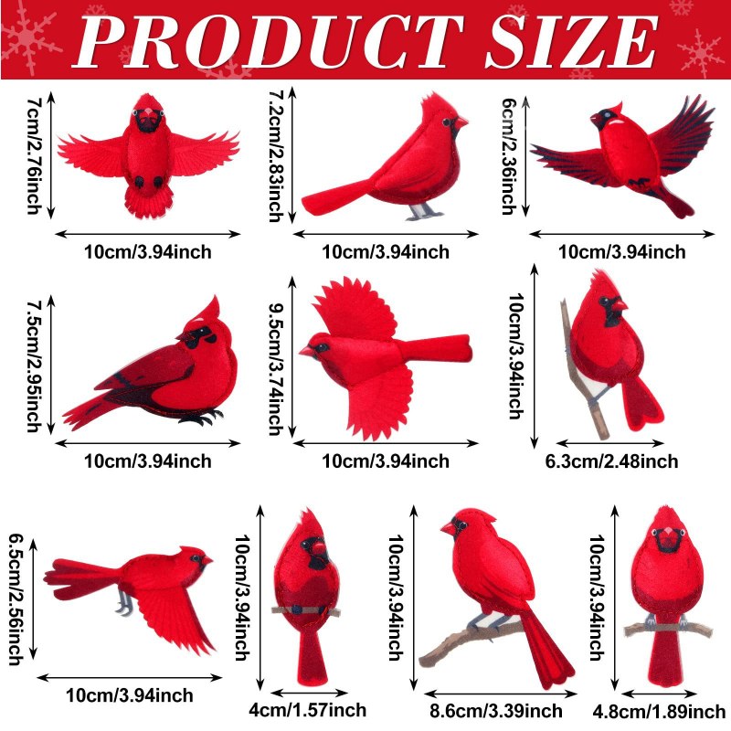 • 10 個クリスマス赤い鳥人工クリスマス赤い鳥フェルトモック赤い鳥の装飾品クリスマスツリーの装飾ホーム