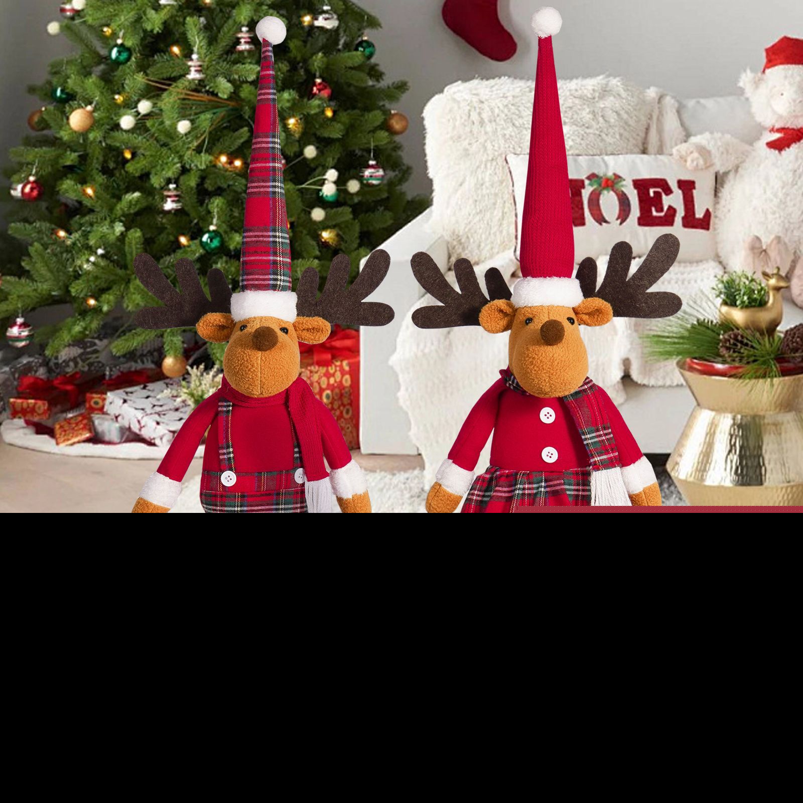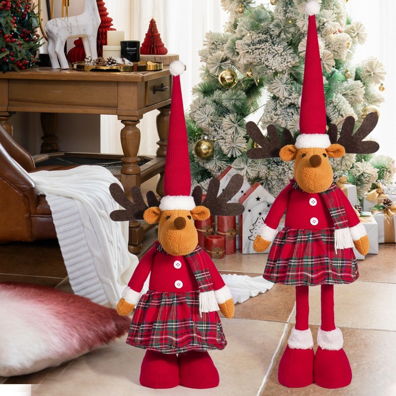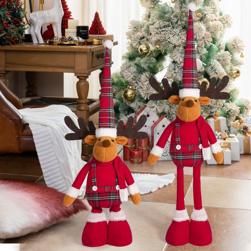 • クリスマス20インチのレッドヘラジカ人形、キュートでクリエイティブな立っている鹿の人形、ホリデーデコレーションオーナメント