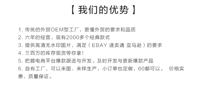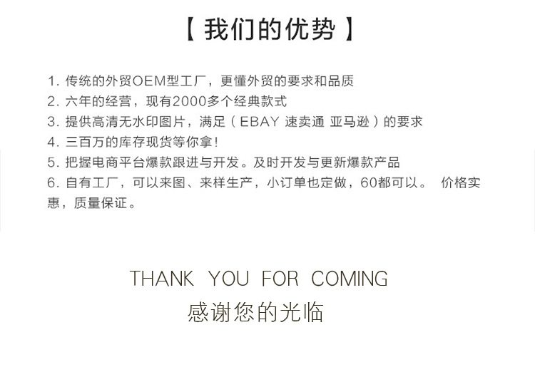 弊社が取り扱っている商品は、自社の海外工場から直送しています。ご入金が確認でき次第に商品を発送いたします。ご注文殺到時や、ご注文数量、種類が多い場合は、発送が遅れる可能性がございます、ご了承ください。ご注文商品の中に在庫がない商品につき、その商品のみキャンセルさせていただき、在庫のある商品のみをまとめて発送させていただきます。また、ご注文後の商品追加や、内容変更、同梱などはお受付しておりません。