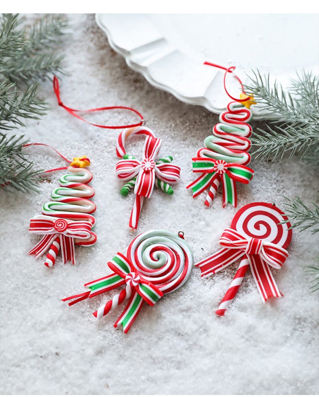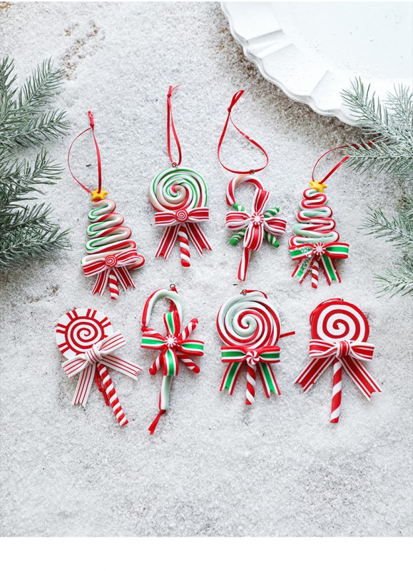 • 新しいクリスマス装飾用品クリエイティブ赤、白、緑のキャンディペンダントソフトクレイシミュレーションロリポップキャンディペンダント