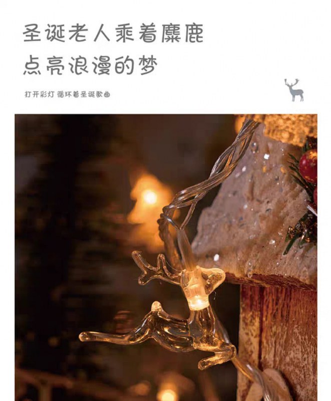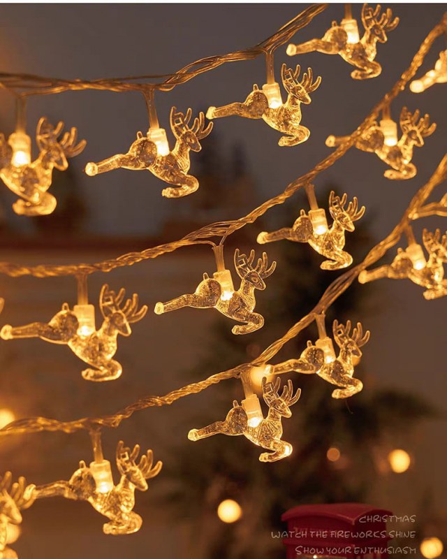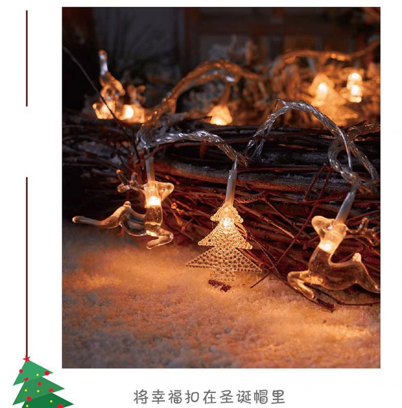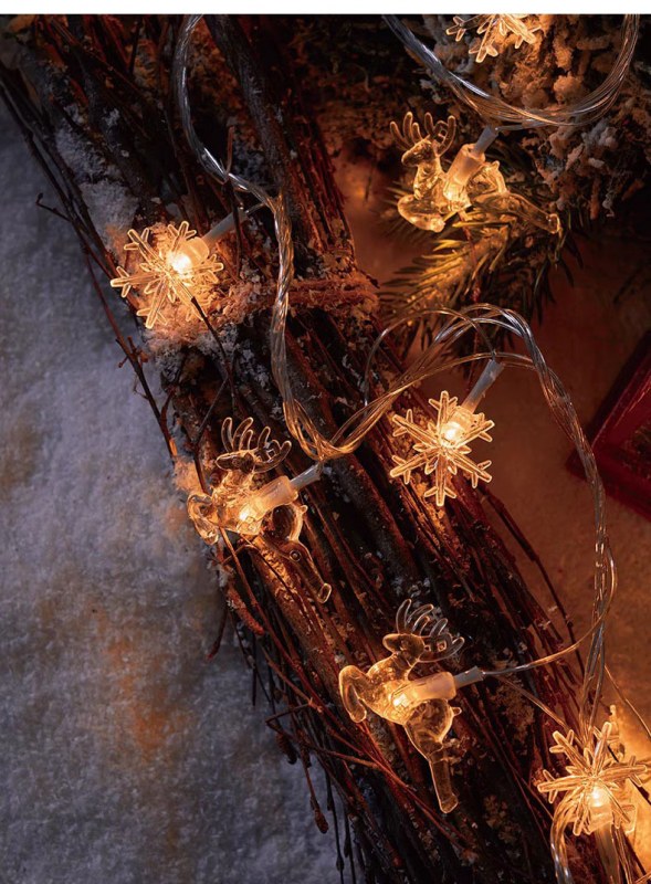 • LEDクリスマスライトストリングスノーフレークヘラジカクリスマスツリー雰囲気装飾小さなランタンホリデーアレンジメントライトストリング