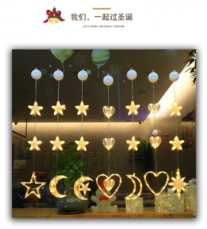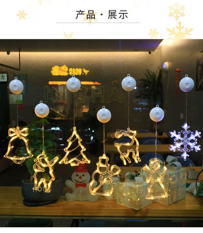 • クリスマス吸盤ライト塗装 LED ライト装飾店の窓の背景吊り下げ装飾ヘラジカの木老人新年雪の結晶