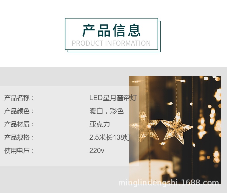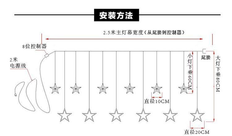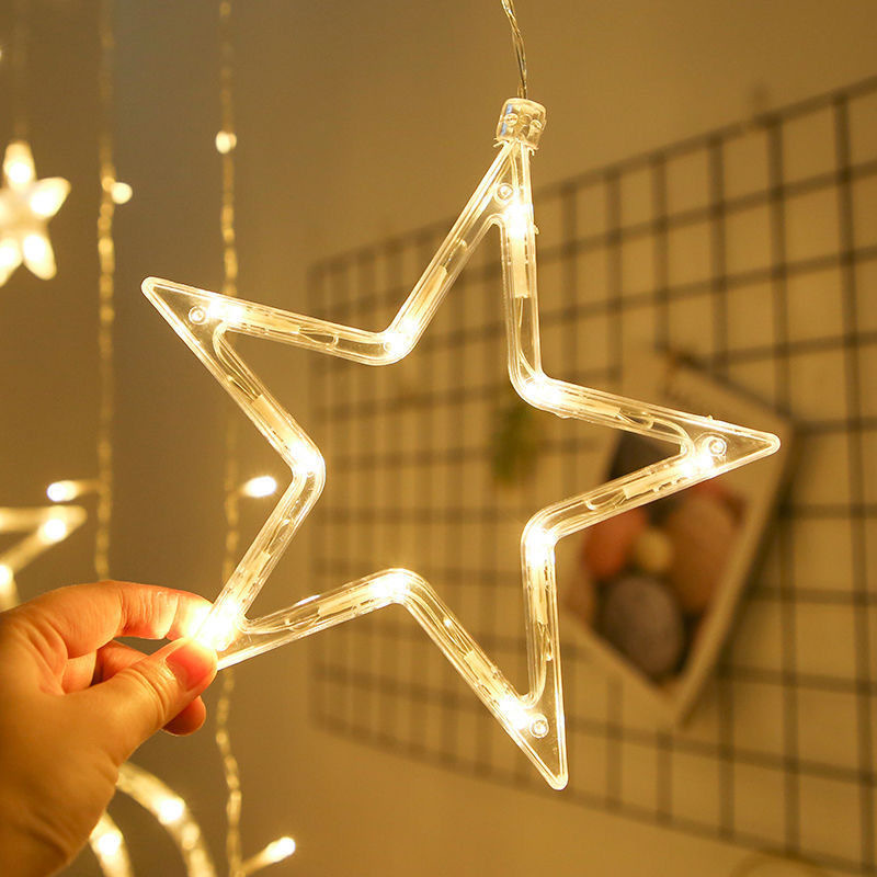 • LED大小の星型カーテンライト、プラグイン五芒星の背景ライト、クリスマスパーティー装飾ライト