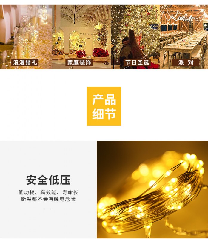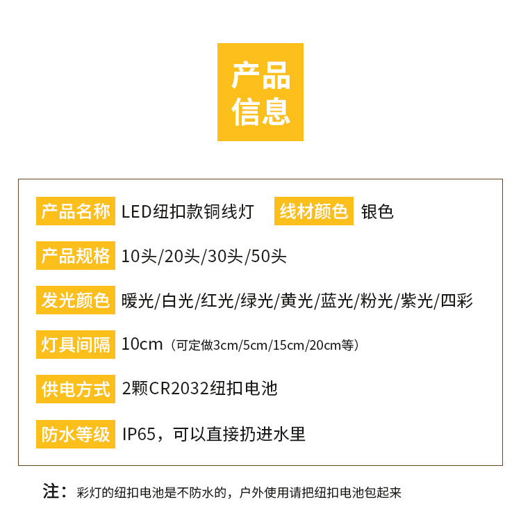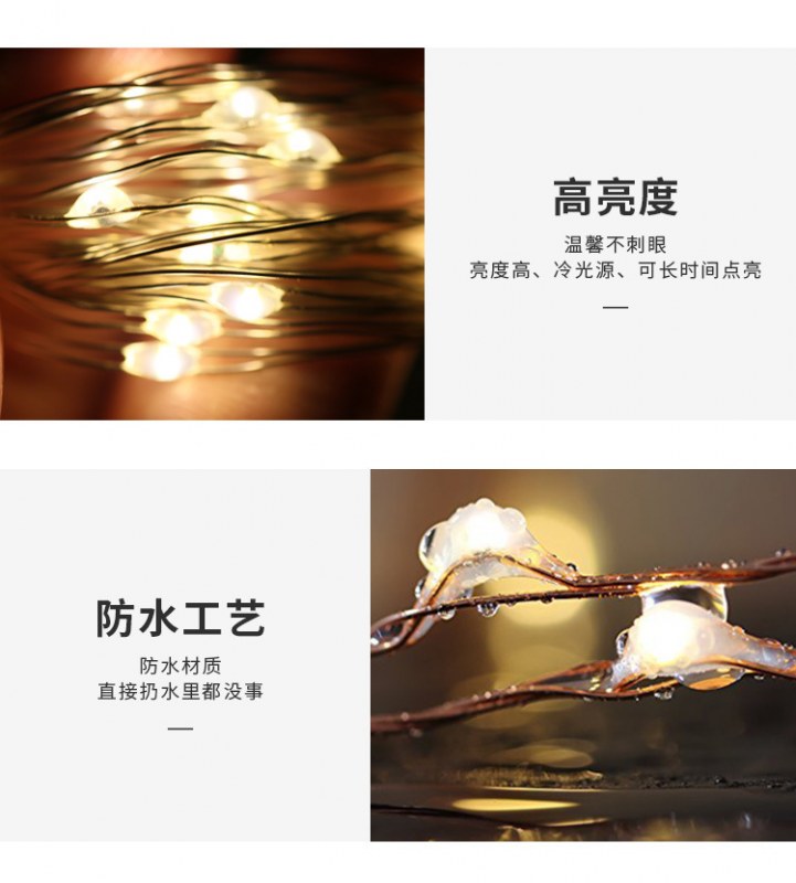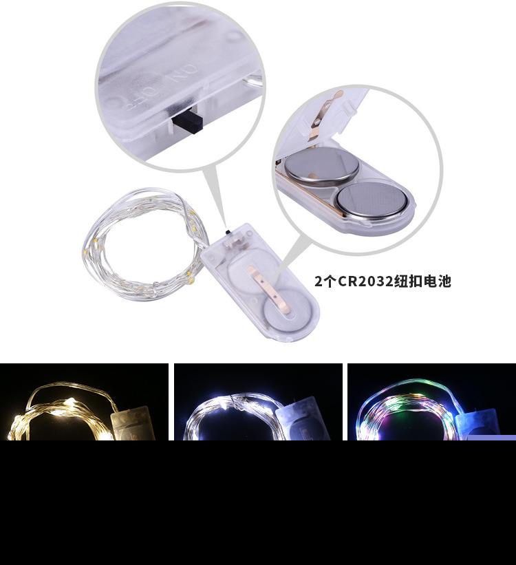 • LED ライトストリング銅線ライト CR2032 ボタン電池ボックス銅線クリスマスライト屋外の庭の装飾ライトストリング